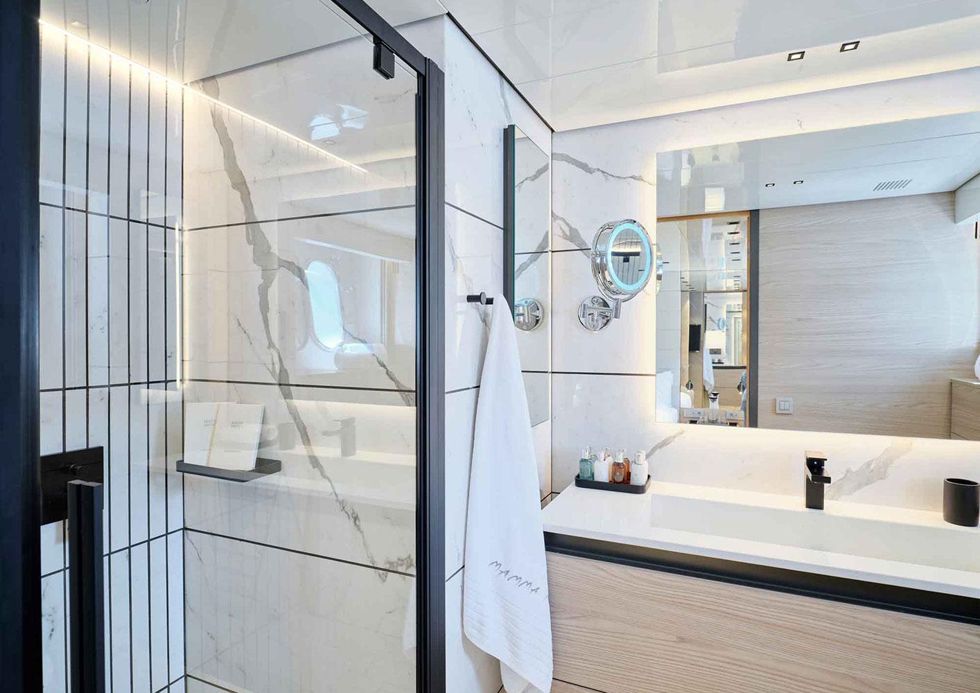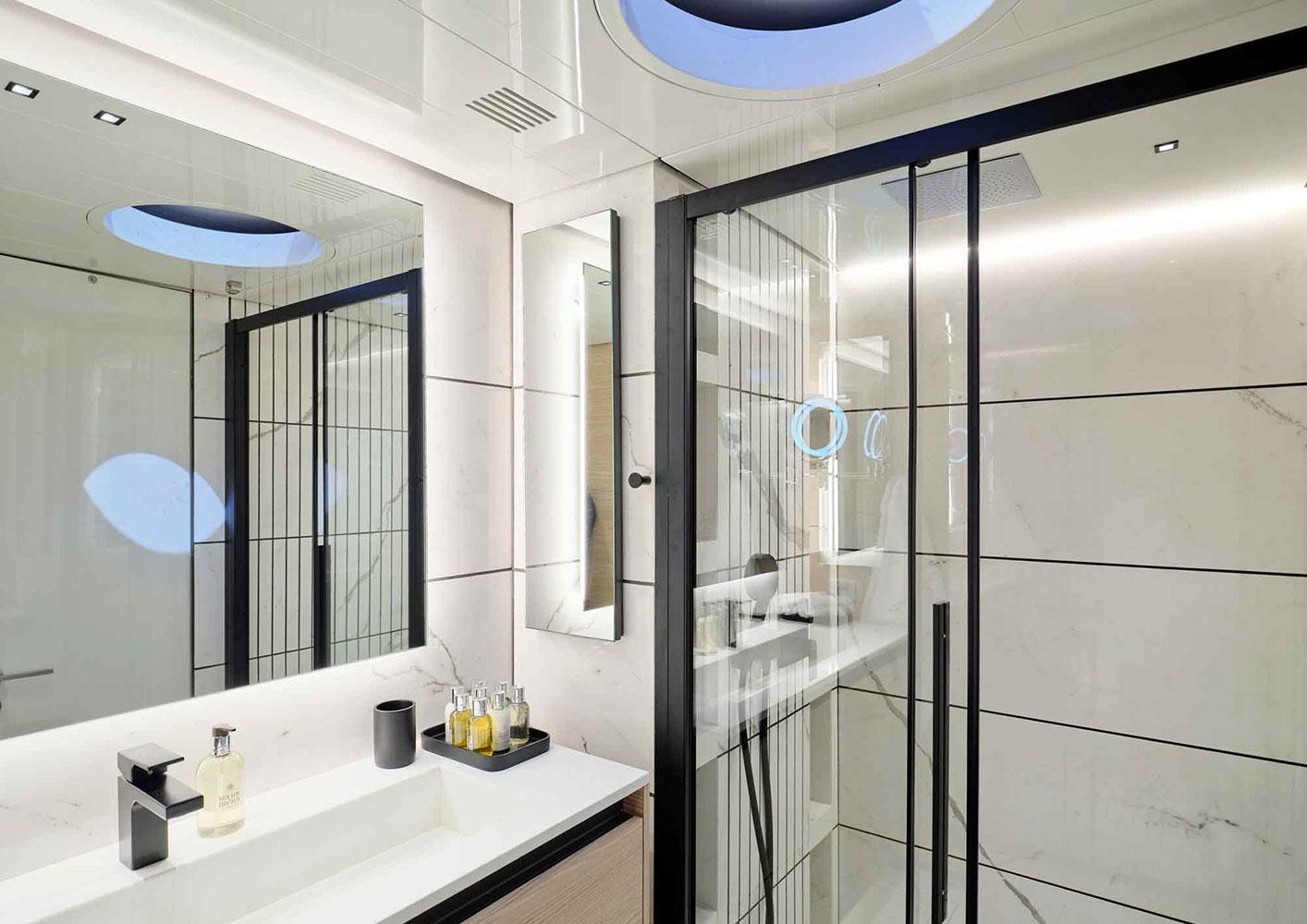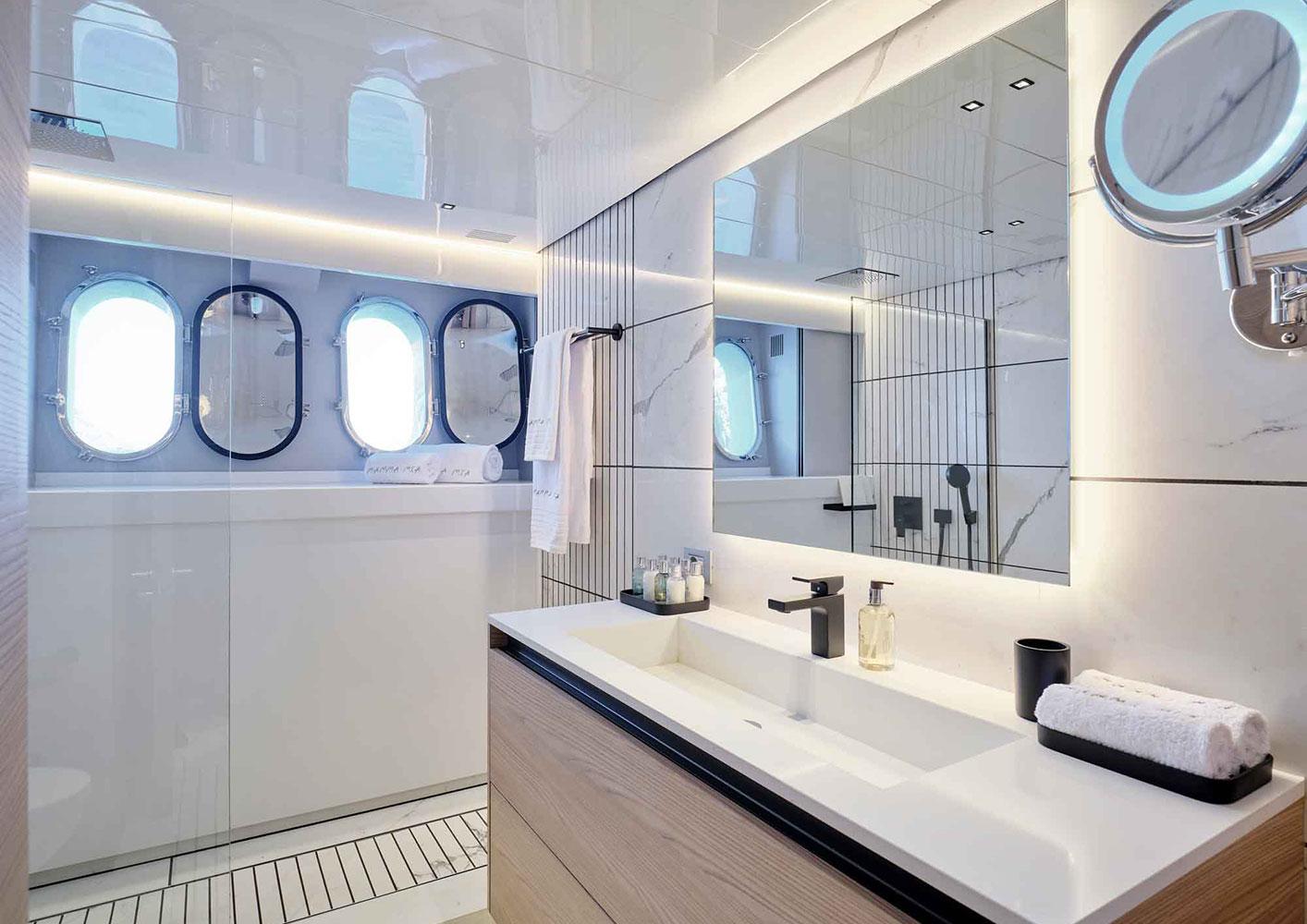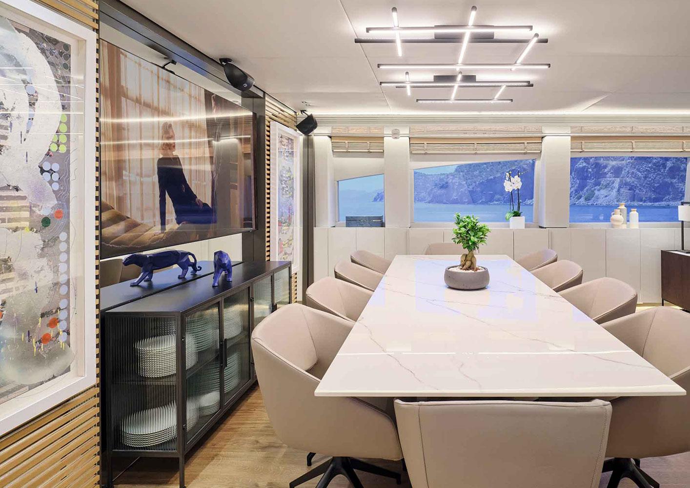Προχωρήσαμε σε πλήρη ανακαίνιση, αλλάζοντας όλο το ύφος και τη μορφολογία του σκάφους καθώς και πολλές από τις λειτουργίες του σκάφους, σύμφωνα με τις επιθυμίες της πλοιοκτήτριας εταιρίας.