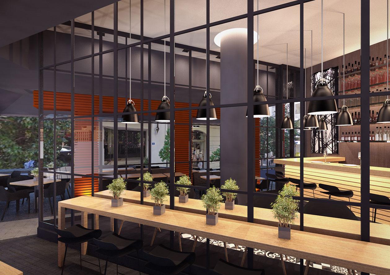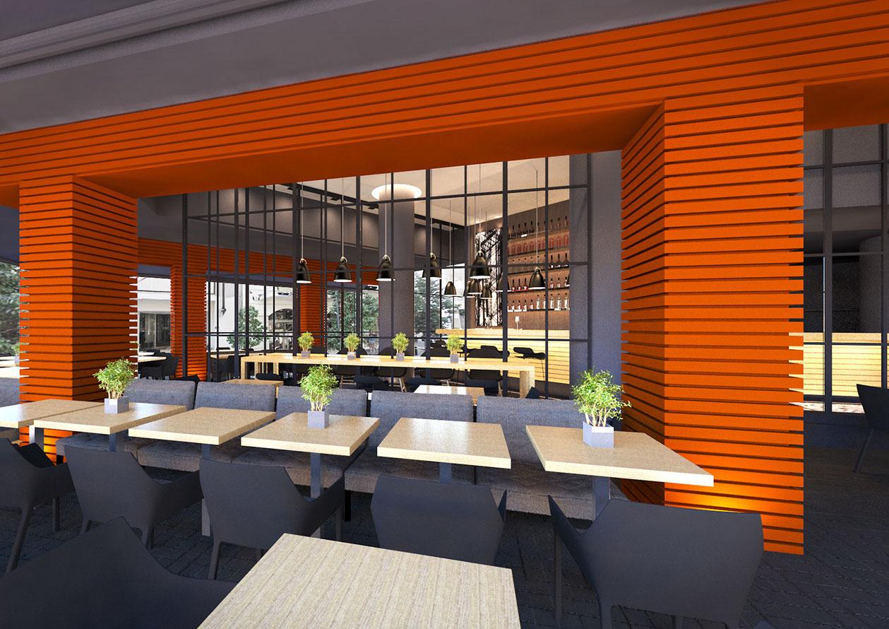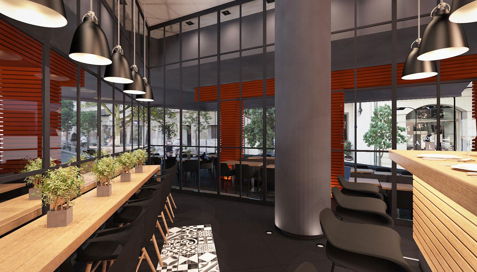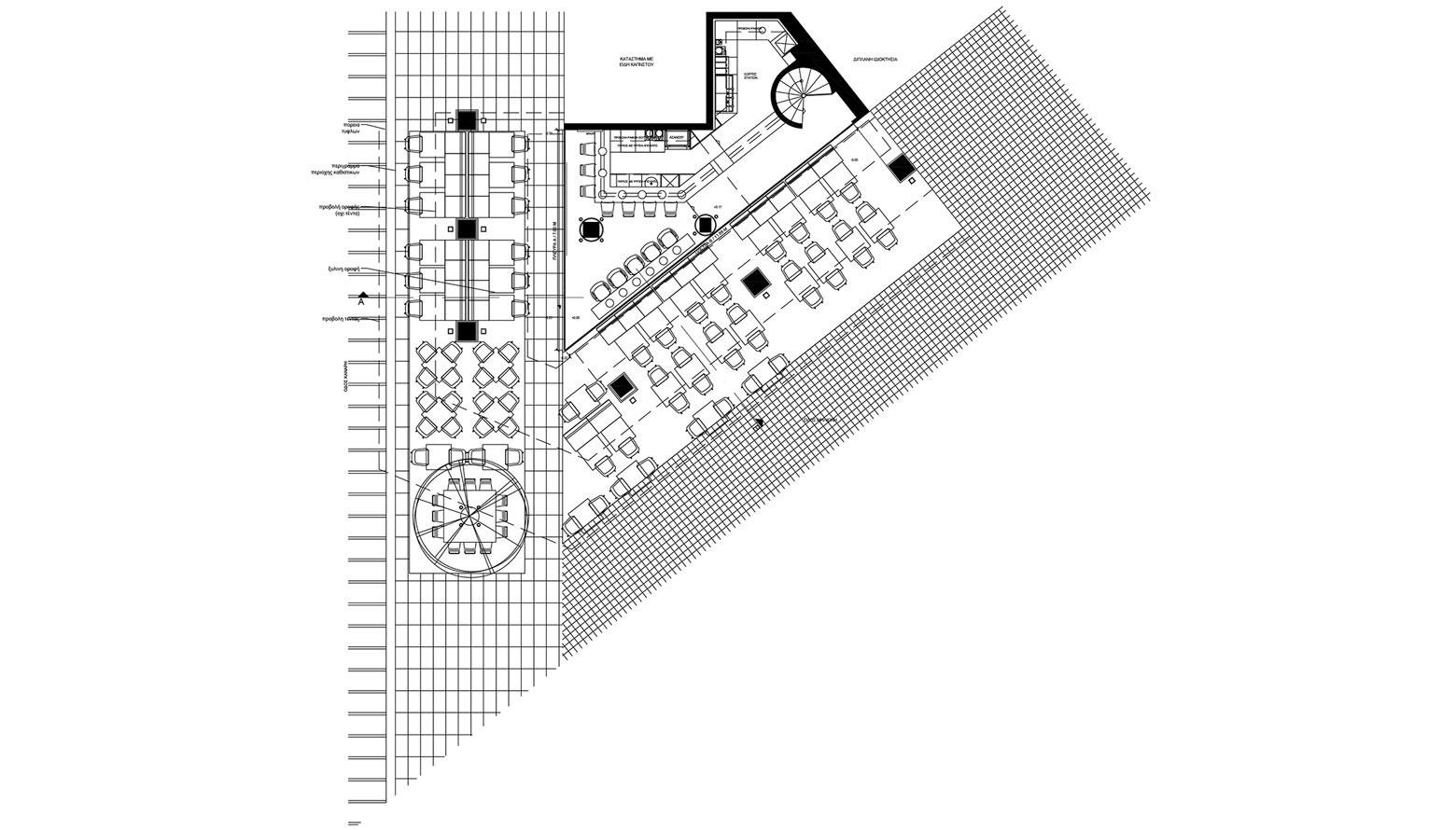 In the summer of 2015, we renovated a tiny café/bar/restaurant with a triangle-shaped floor plan, at the corner of Kanari and Milioni str. in Kolonaki. Since it already was a popular meeting place among celebrities, we had to meet with the expectations of not only Pit, the owner, but also those of his friends and customers. One of the main design elements, is the orange-coloured slat façade that we designed in order to make the tiny café/bar stand out from its many neighbors.