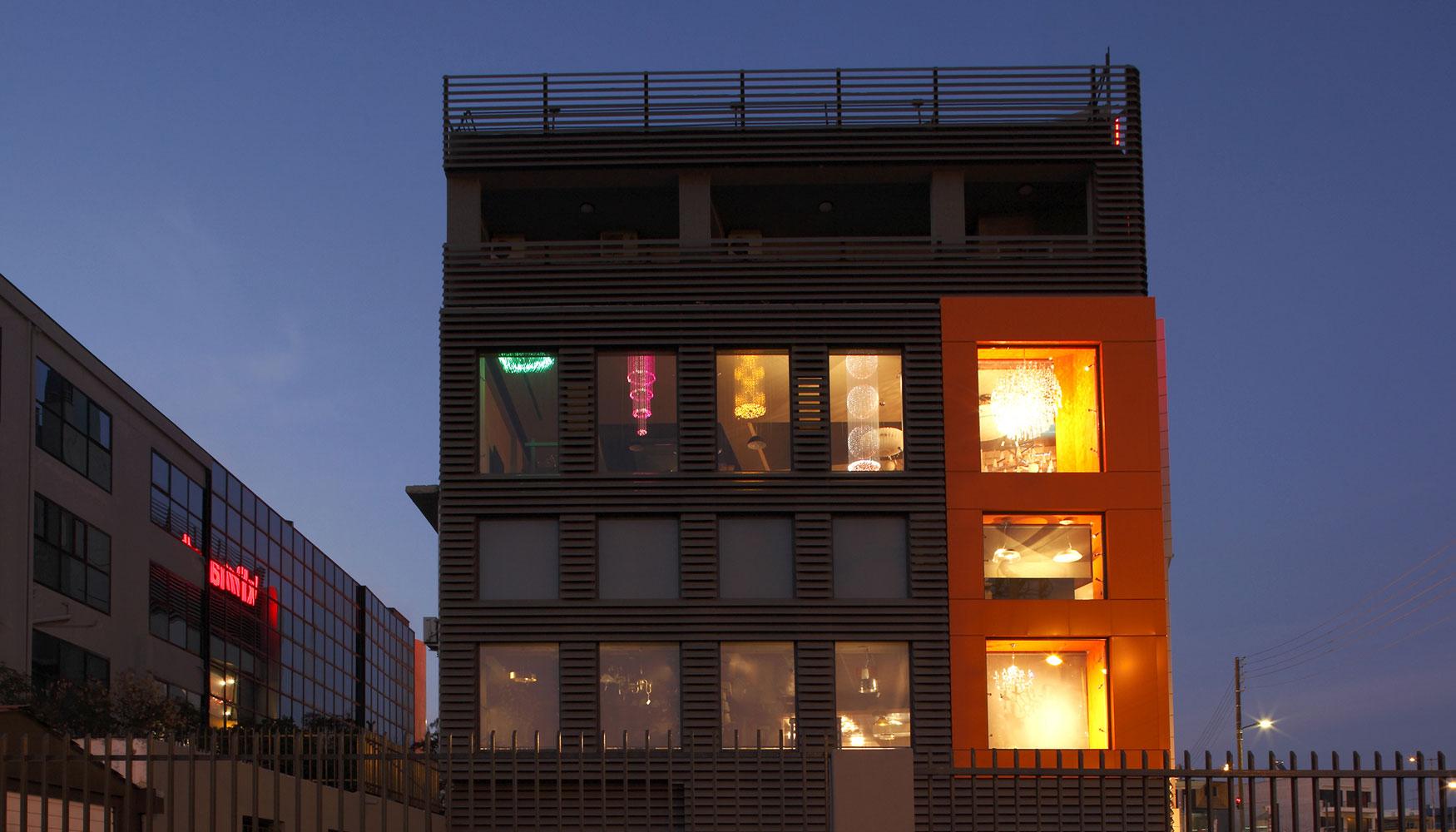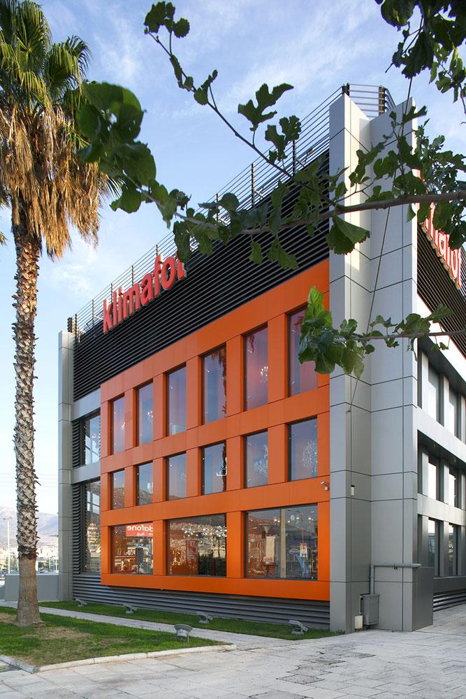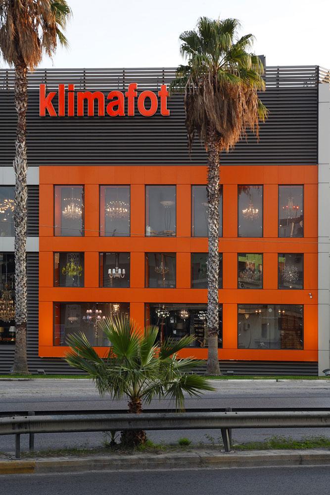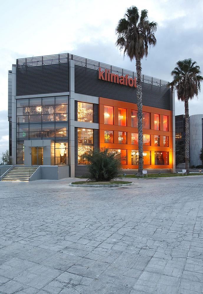 We were assigned to re-design a large building on Alimou Avenue, for Klimafot, a company that designs, manufactures and sells lighting fixtures. The owners expressed from the beginning their wish to differentiate from the buildings of similar companies.