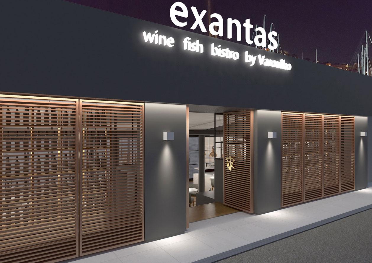 Exantas bar is an experiment of renowned chef Lefteris Lazarou. Our team and himself joined forces to create a brand-new space, full of soul and desire for gastronomic exploration, by the sea.