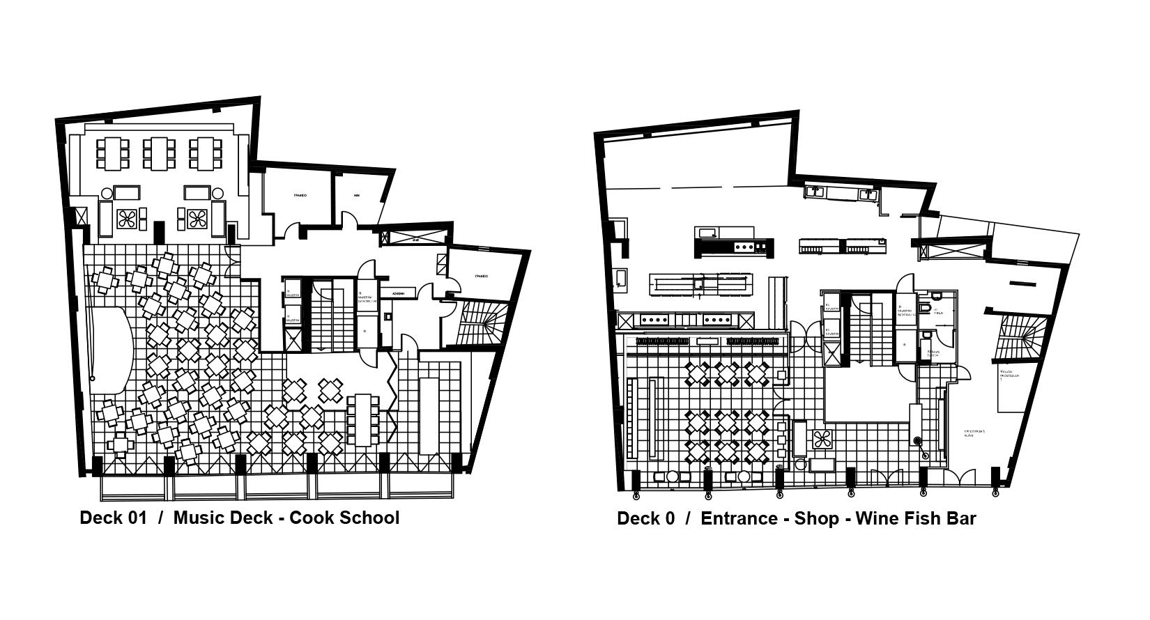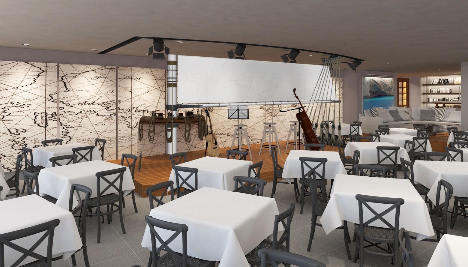 For this three-storey restaurant renovation in Mikrolimano, Piraeus, we collaborated with renowned chef Mr. Lefteris Lazarou. The creative chef asked us to create a concept space, by re-designing the façade and the four levels of the building to house a bar, a live music scene, a cooking seminar space and a roof garden with a beautiful Mikrolimano view.