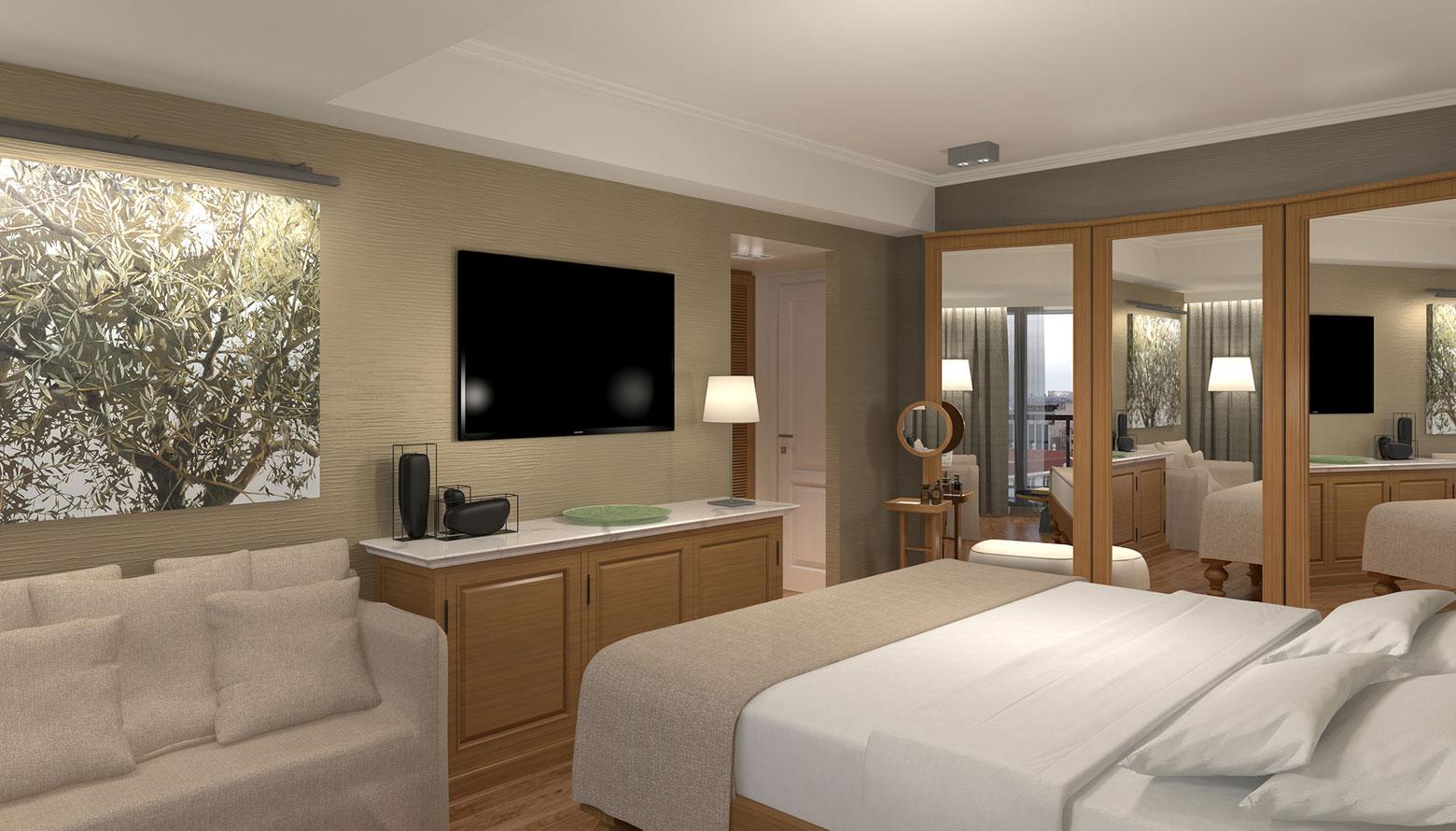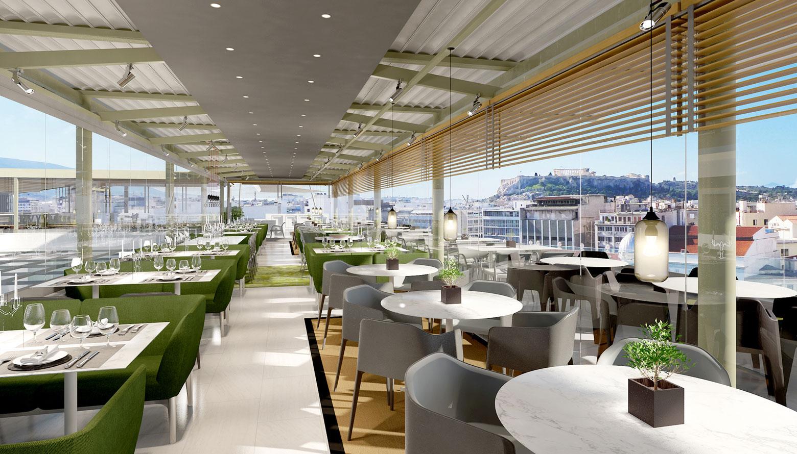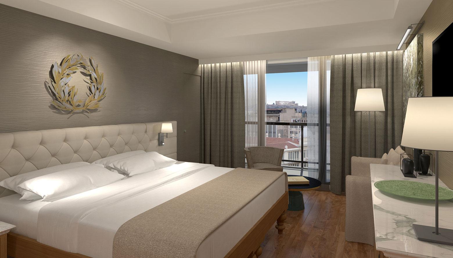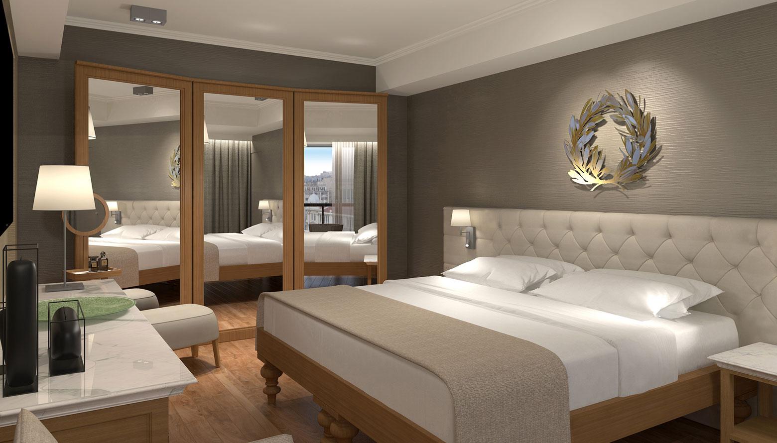 In 2016 we met with the chairwoman of the board of Titania Hotel, Mrs.Irini Malamou and her team. She won us over right away with her kindness and her aura! Shortly after, we agreed on the partial renovation of Olive Garden, the hotel’s rooftop restaurant which has an amazing view to the Acropolis. She also assigned our team to design the renovation of 130 rooms and 6 executive suites of the hotel.
