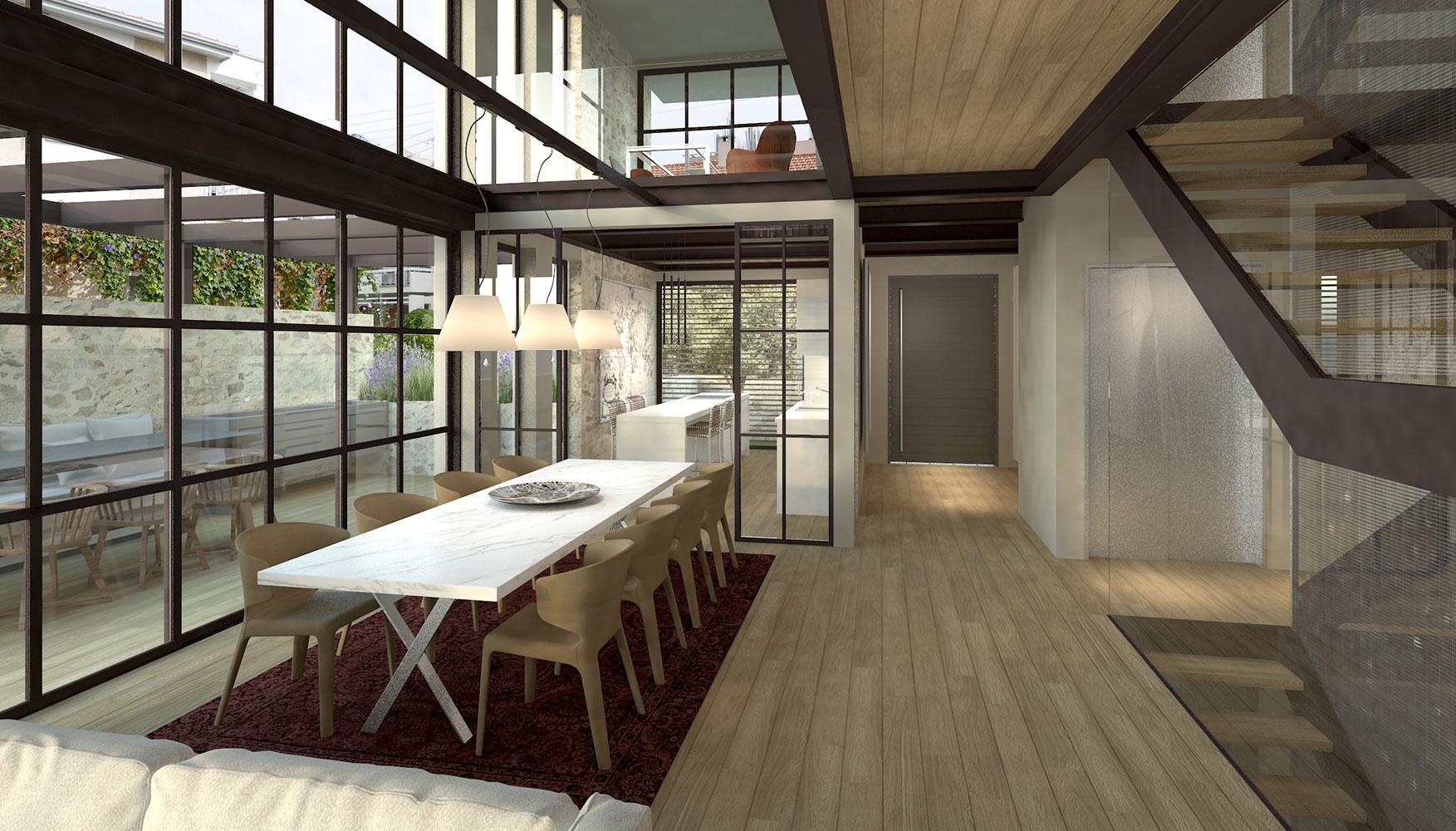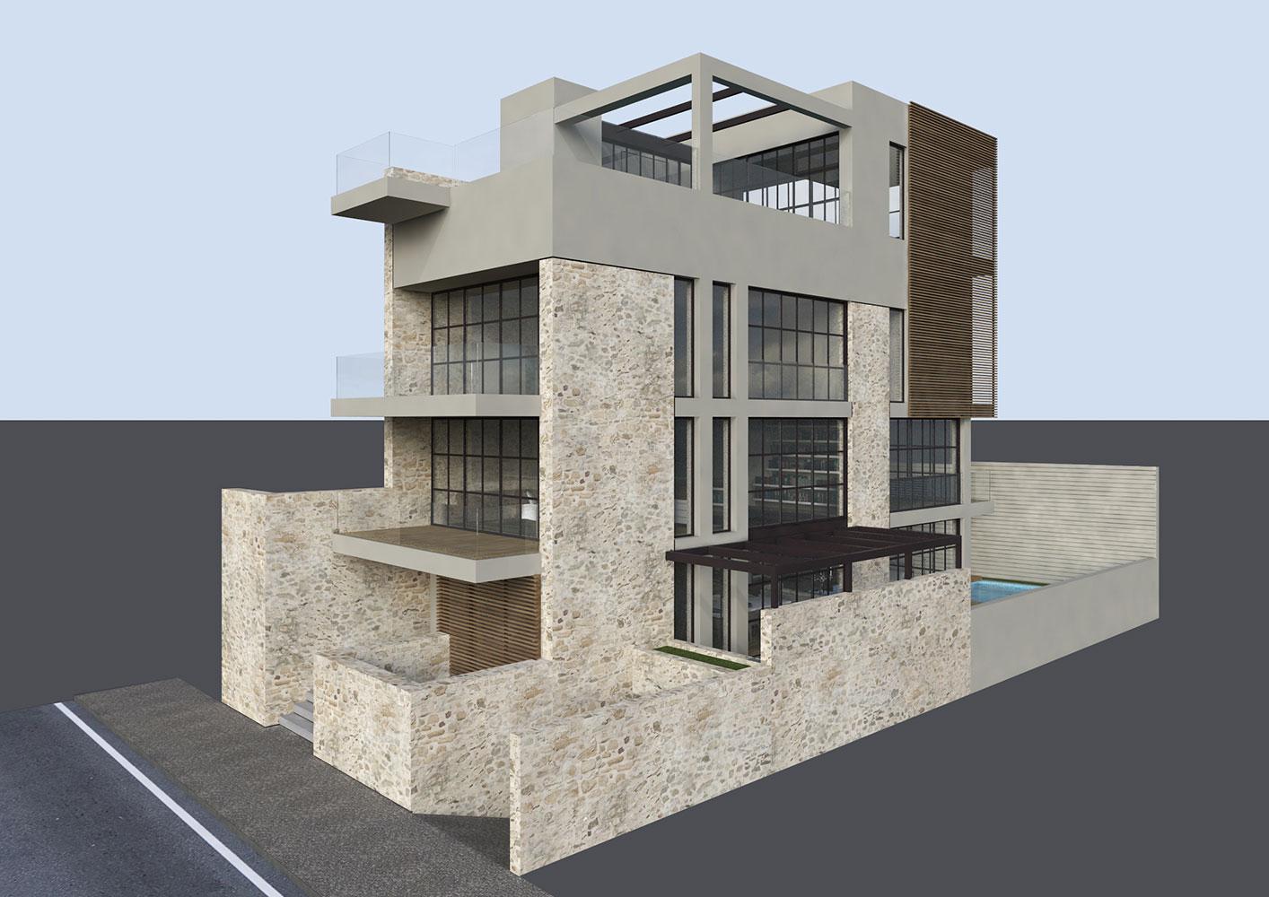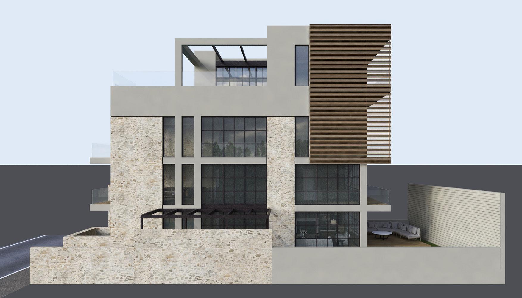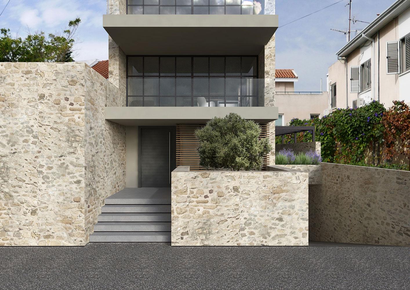 The Cypriot owner contacted us after he visited our Blends project, and he requested a new residence in Limassol for him and his son that would have the same feeling as Blends. This four-level building was a challenging project, due to the narrow shape of the plot, and the many different functions in a small amount of space.