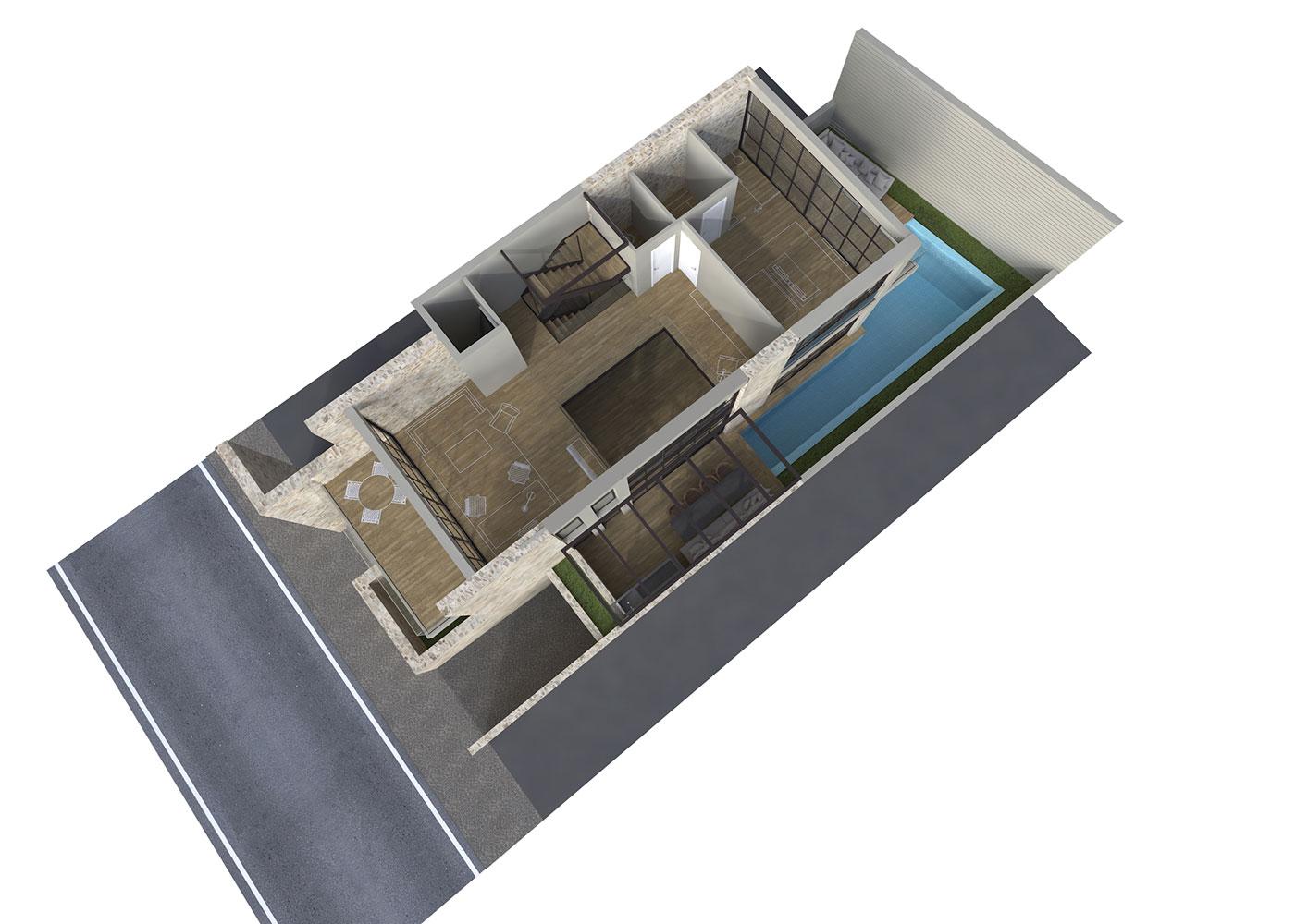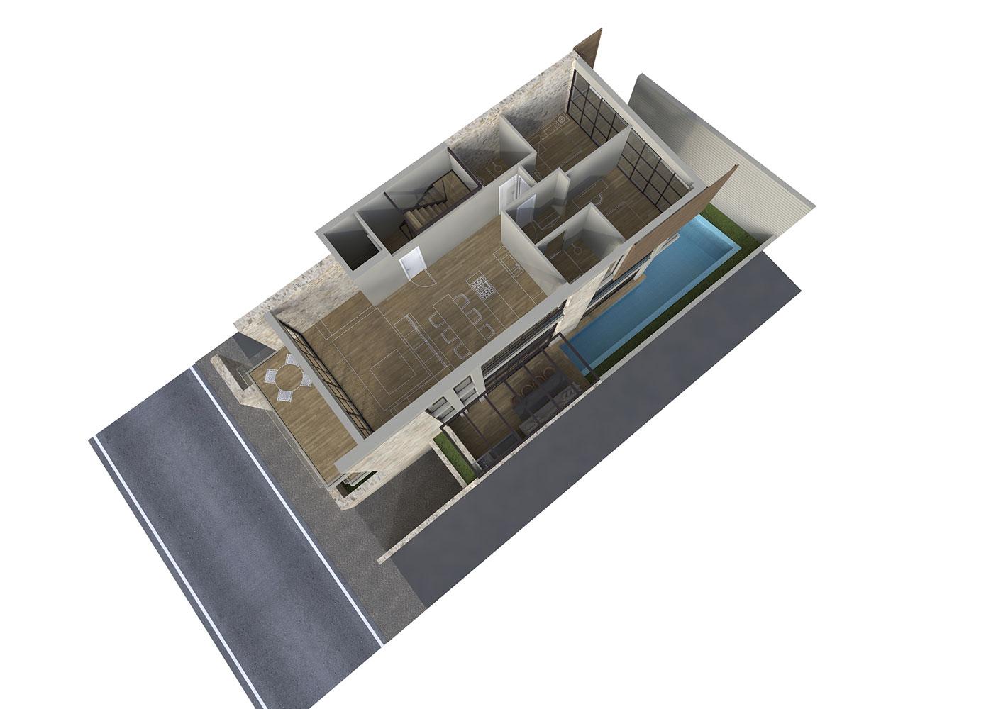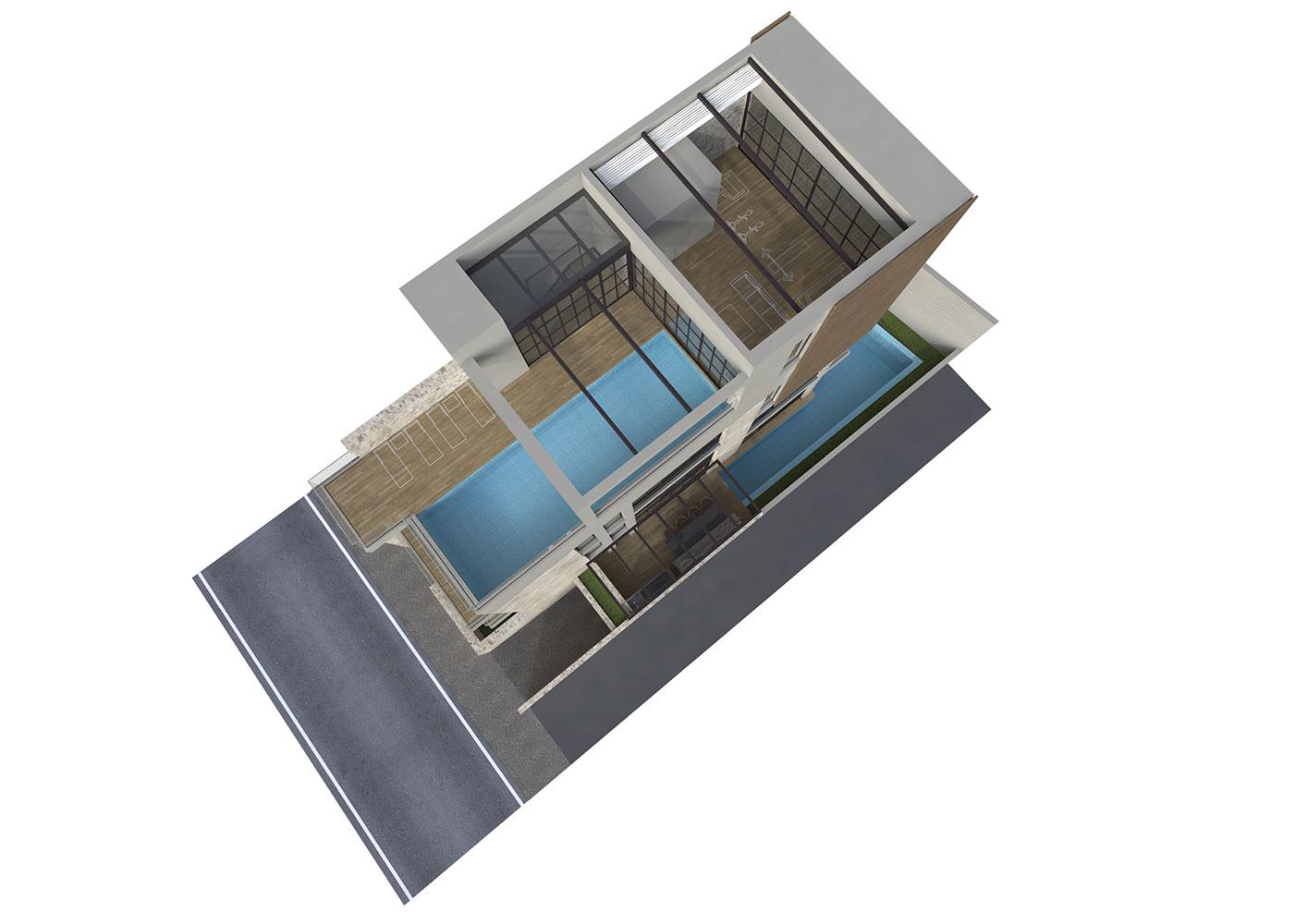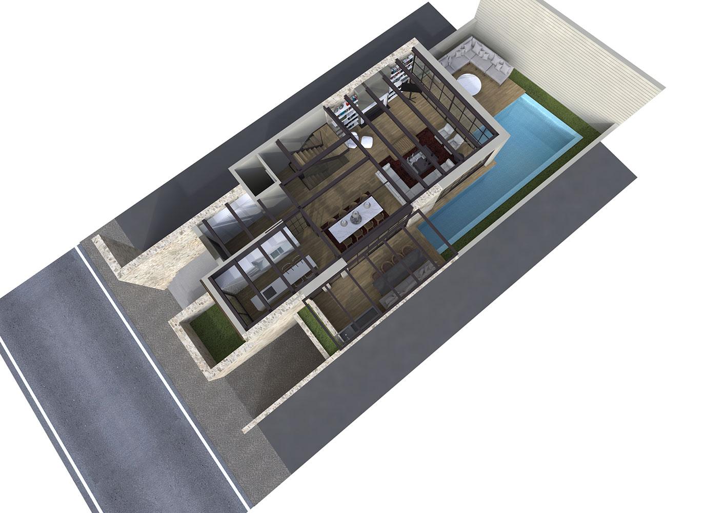 The Cypriot owner contacted us after he visited our Blends project, and he requested a new residence in Limassol for him and his son that would have the same feeling as Blends. This four-level building was a challenging project, due to the narrow shape of the plot, and the many different functions in a small amount of space.