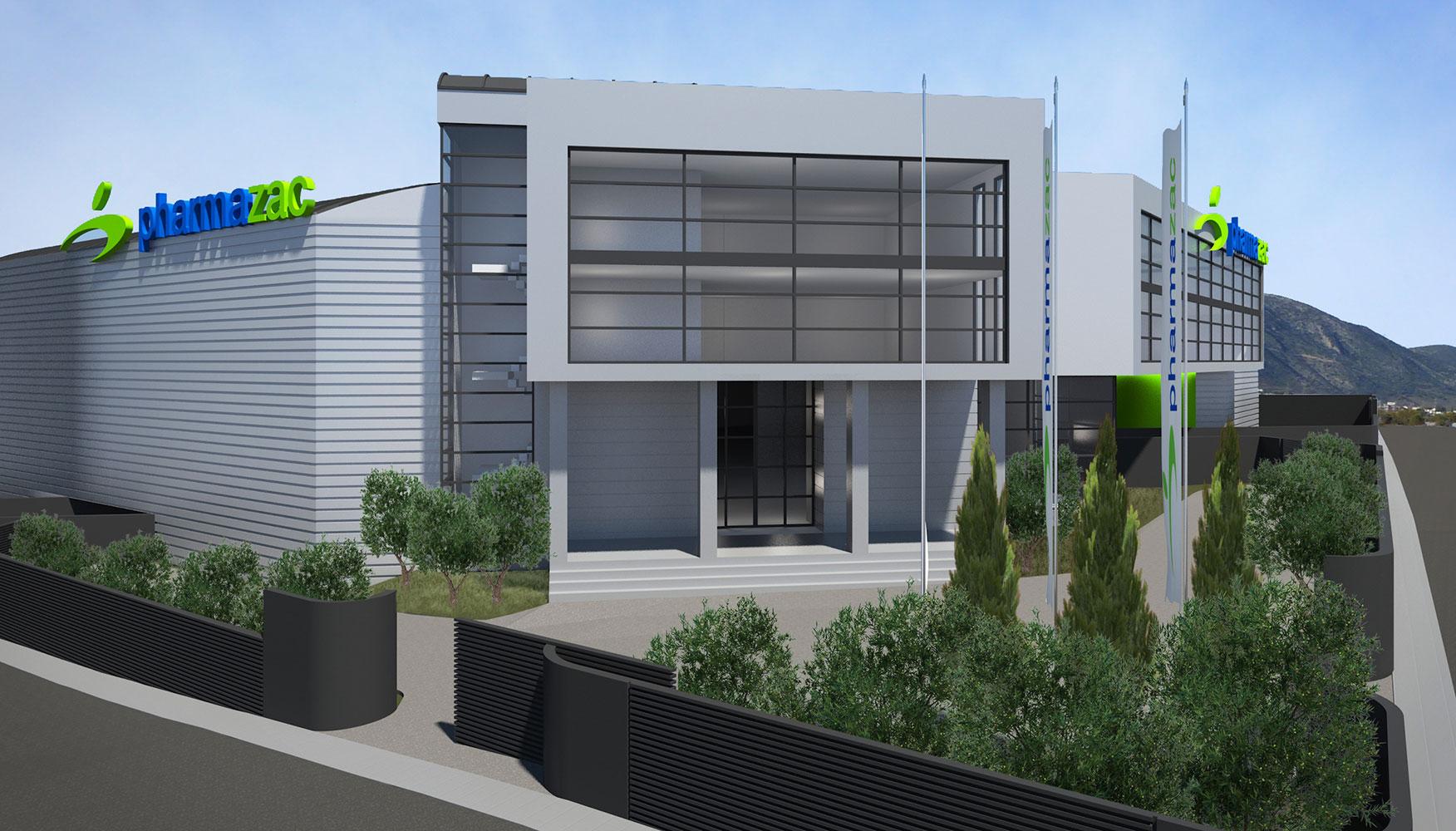 We designed the manufacturing facility of Pharmazac pharmaceutical company in 2016. We were part of a large team of specialized engineers, and we undertook the general functionality and aesthetic of the building. Concerning the production lines, raw material delivery areas and the storage of the final products, we collaborated with the production engineers and designed the whole facility’s layout based on very specific requirements and diagrams.