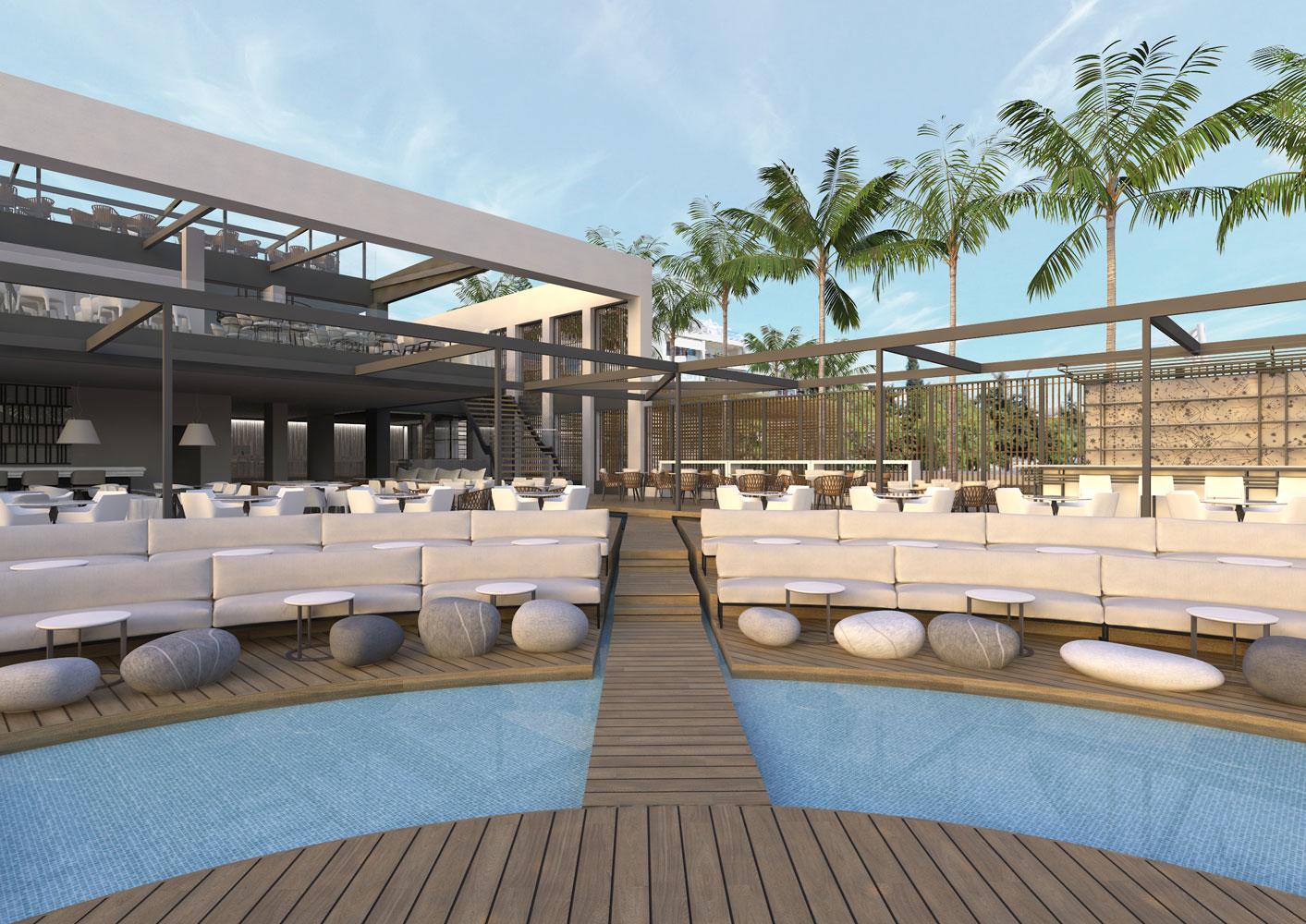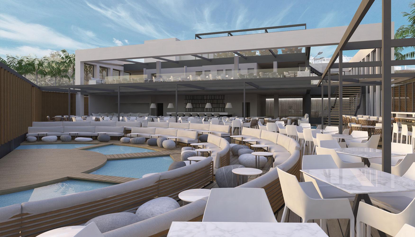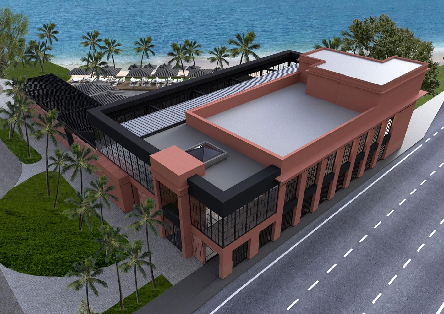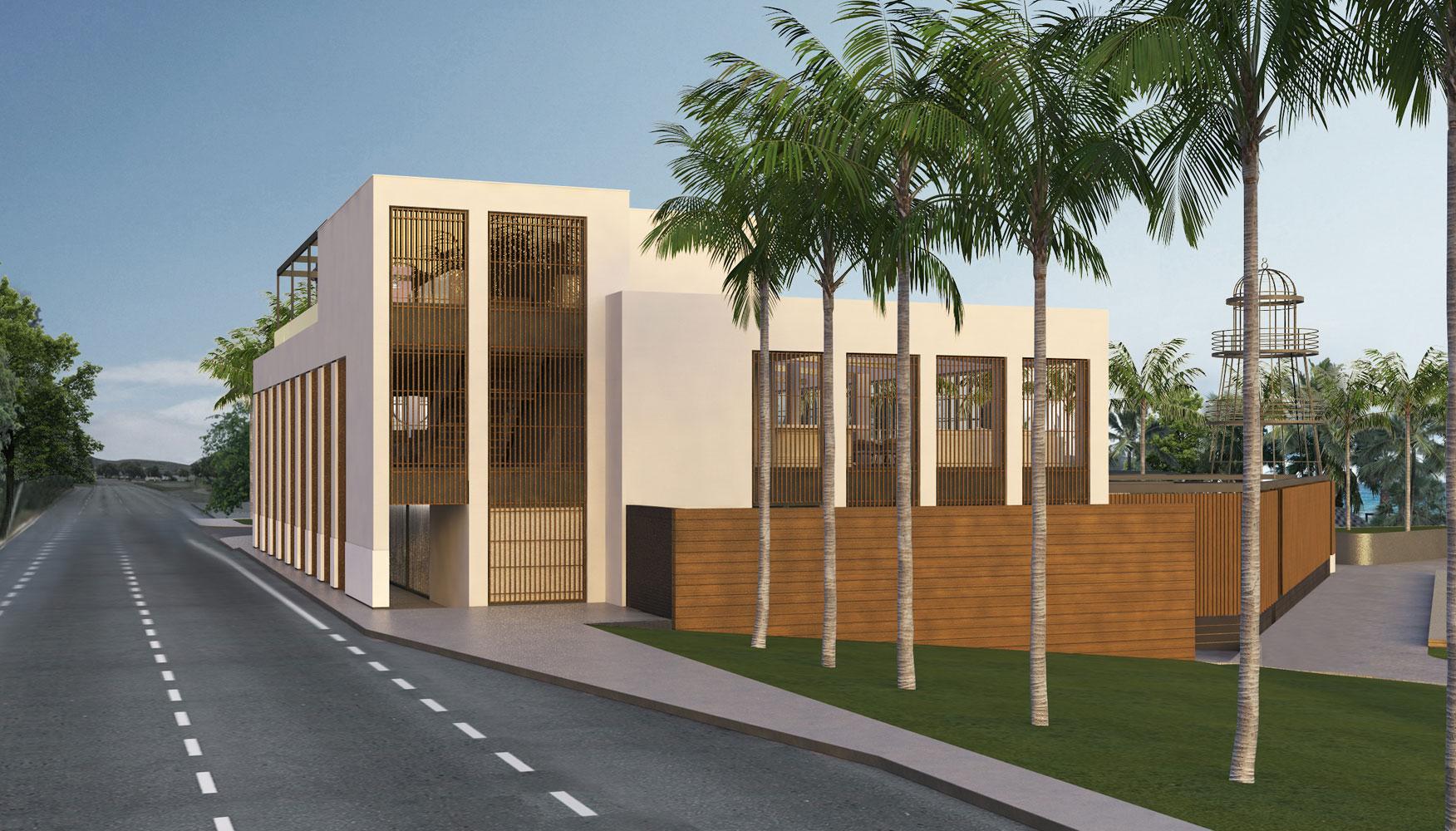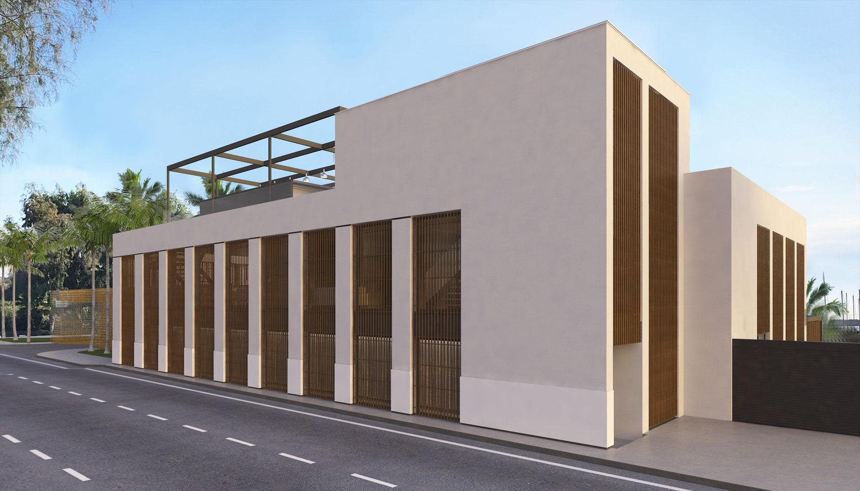 In both our proposals, our starting point was to create a two-meter wide corridor for safe pedestrian movement, in the form of a protected gallery. The proposed entrance to the complex was located east, with a large open-air parking space. In both proposals, the center point was the view and the proximity to the sea.