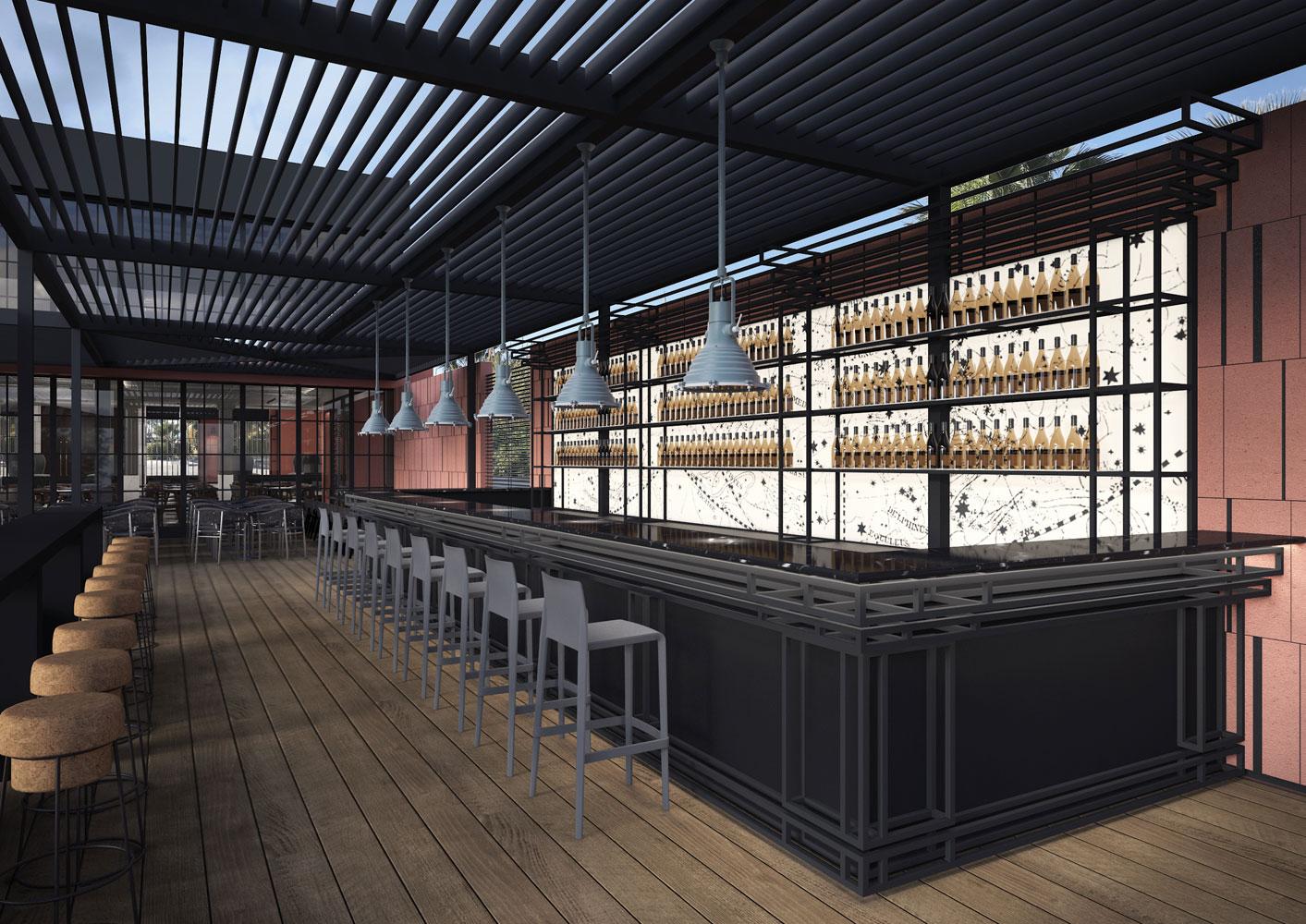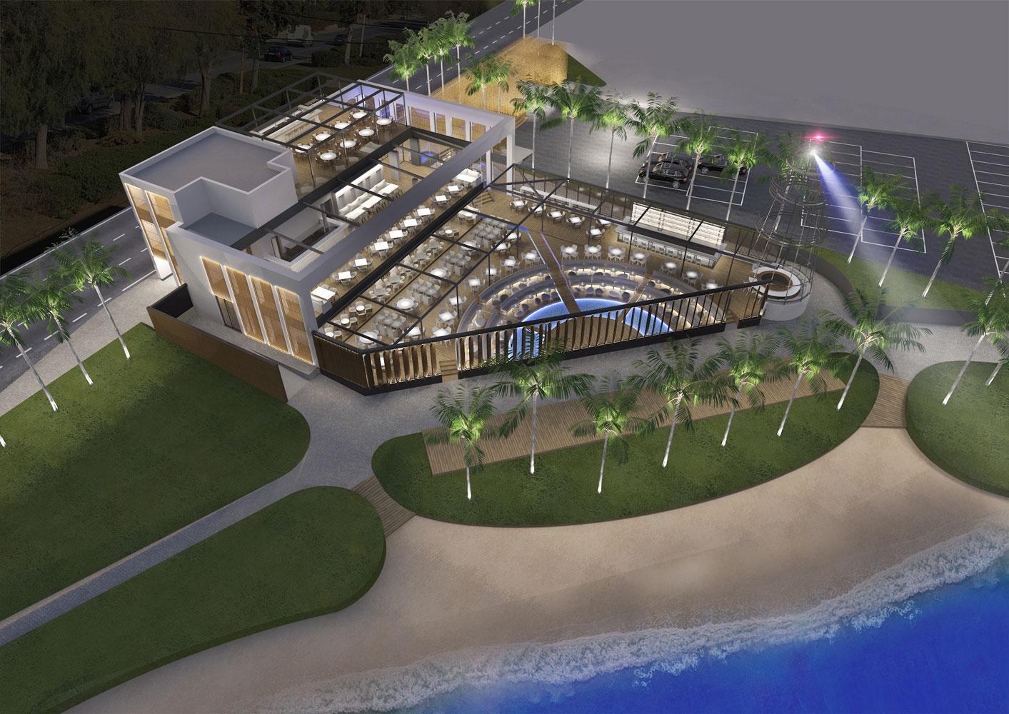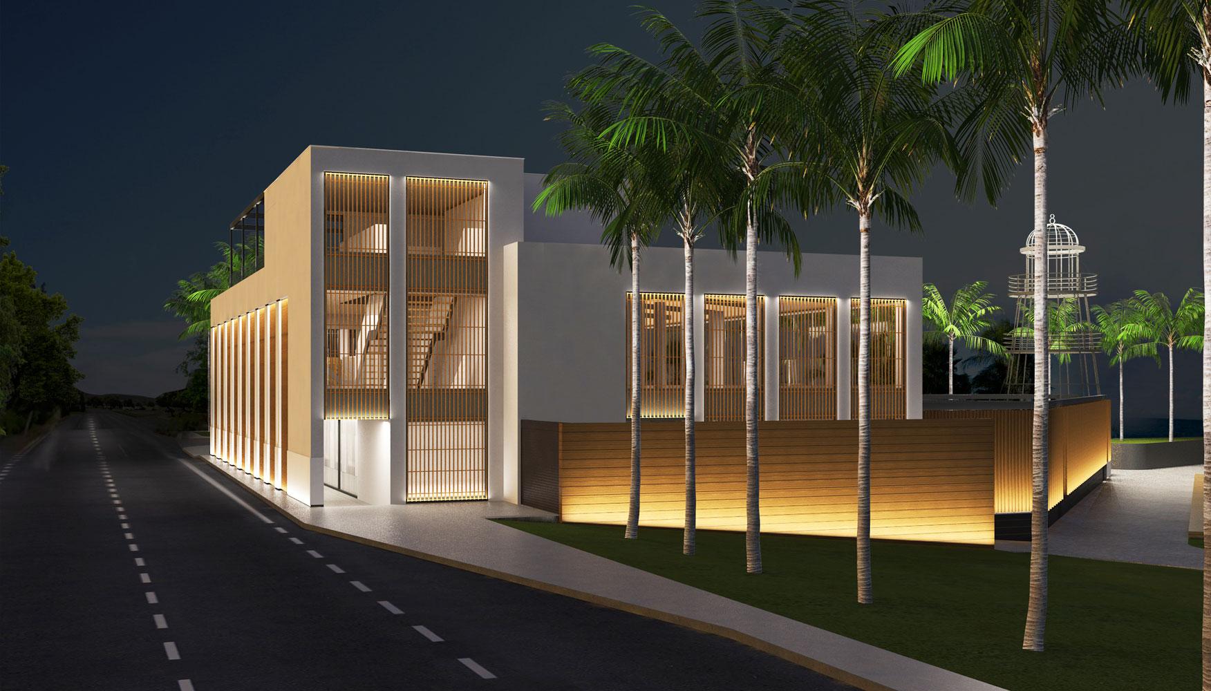 The second time, we designed a complex comprising of a fine dining restaurant on the first floor, a café/bar at the ground level, and an open-air space that would offer many possibilities for alternative entertainment.