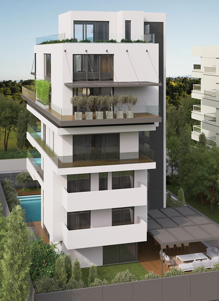 The building we designed included a ground-floor level maisonette, a second-floor apartment, and the owner’s third and fourth floor maisonette. All the properties of the building enjoy a beautiful view of Glyfada Golf as well as the sea.
