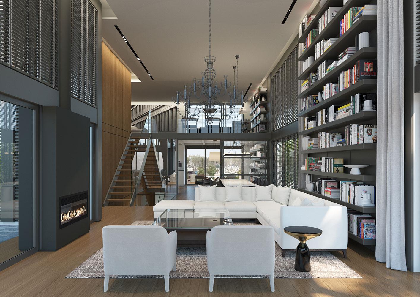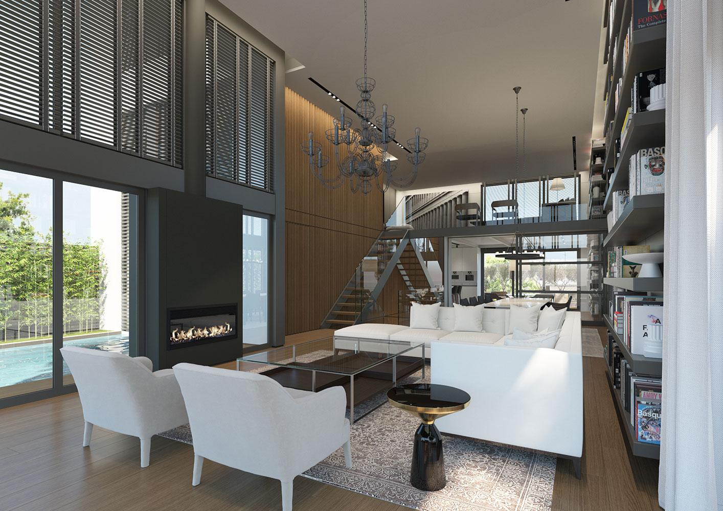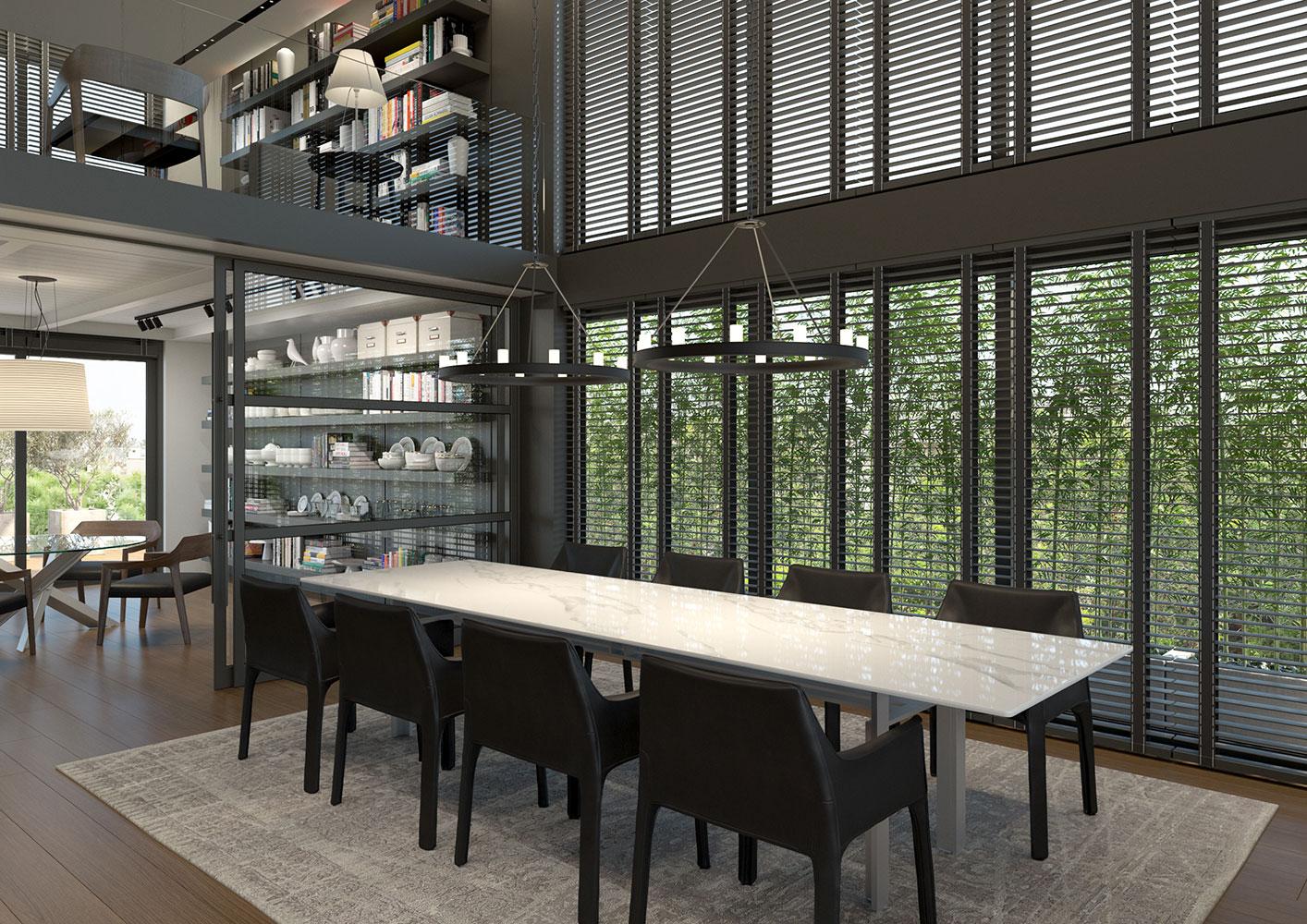 The owner of the plot asked us to design a residential building with a maisonette with a swimming pool at the top floors of the building that would serve as her own residence.
