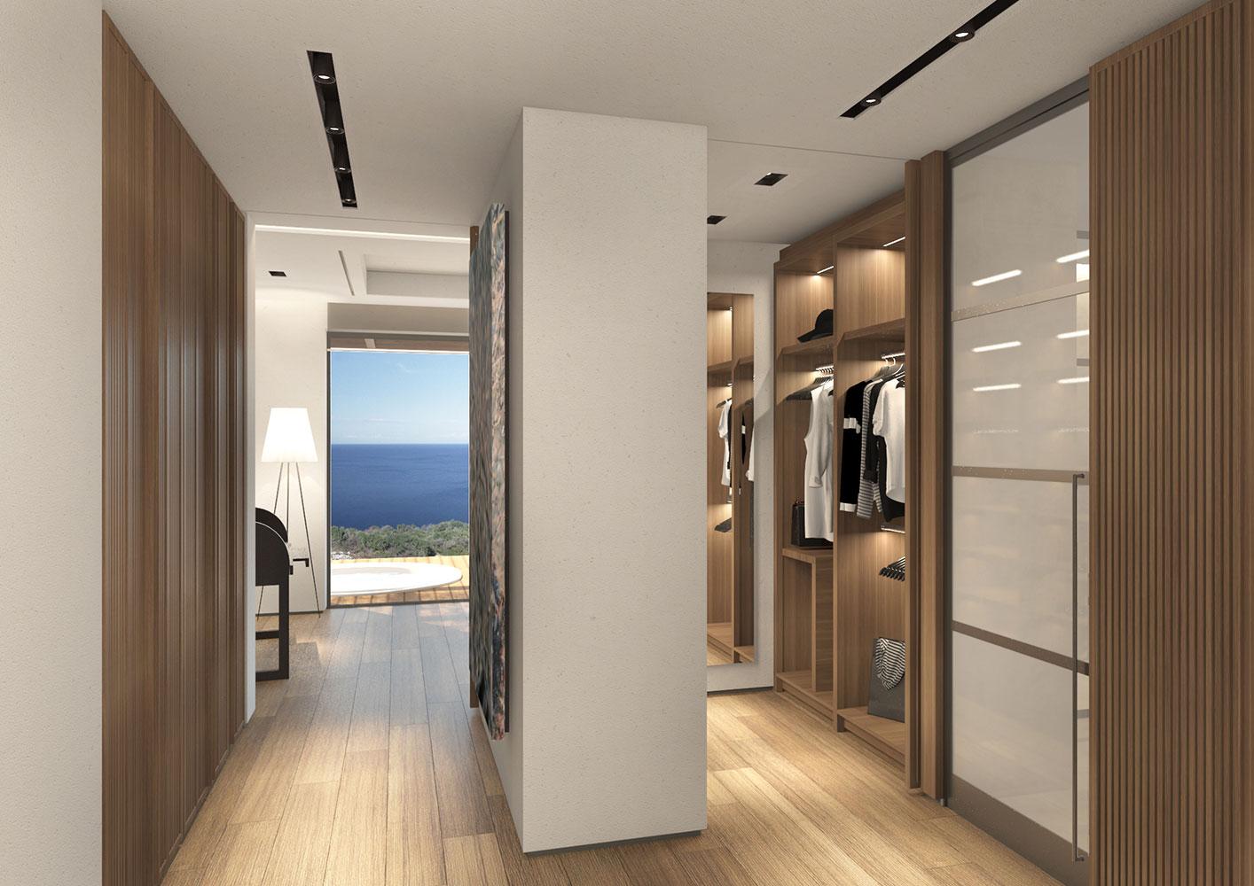 At the lower level, we designed the master bedroom, two children’s bedrooms, two guestrooms, a gym, personnel areas and secondary spaces.