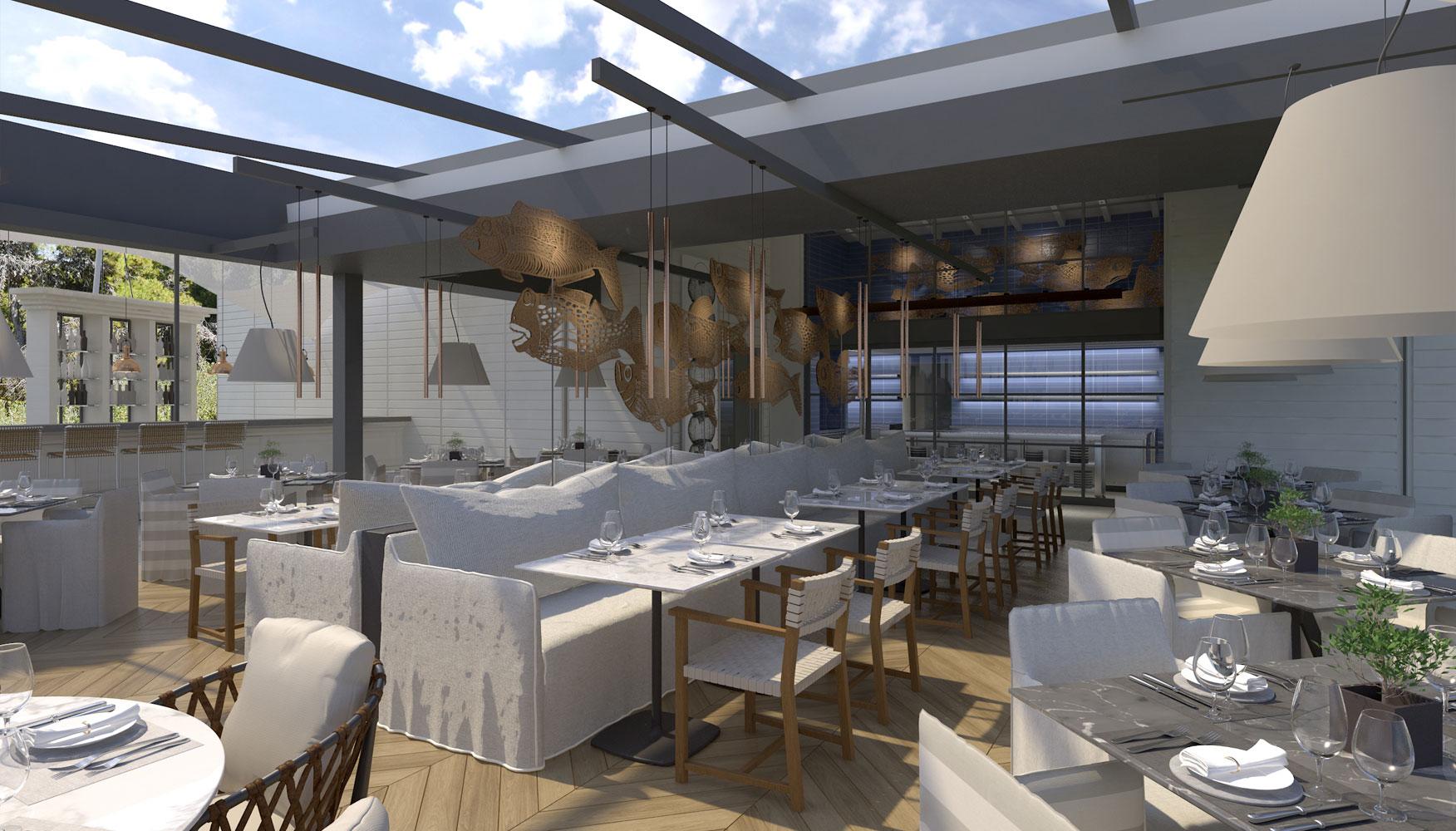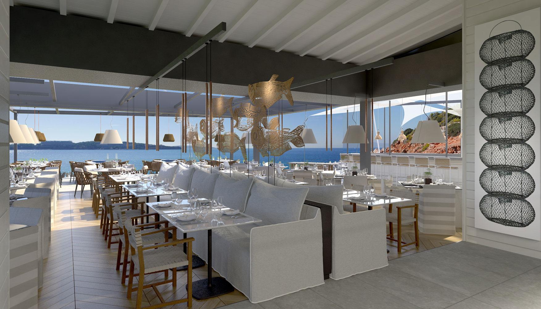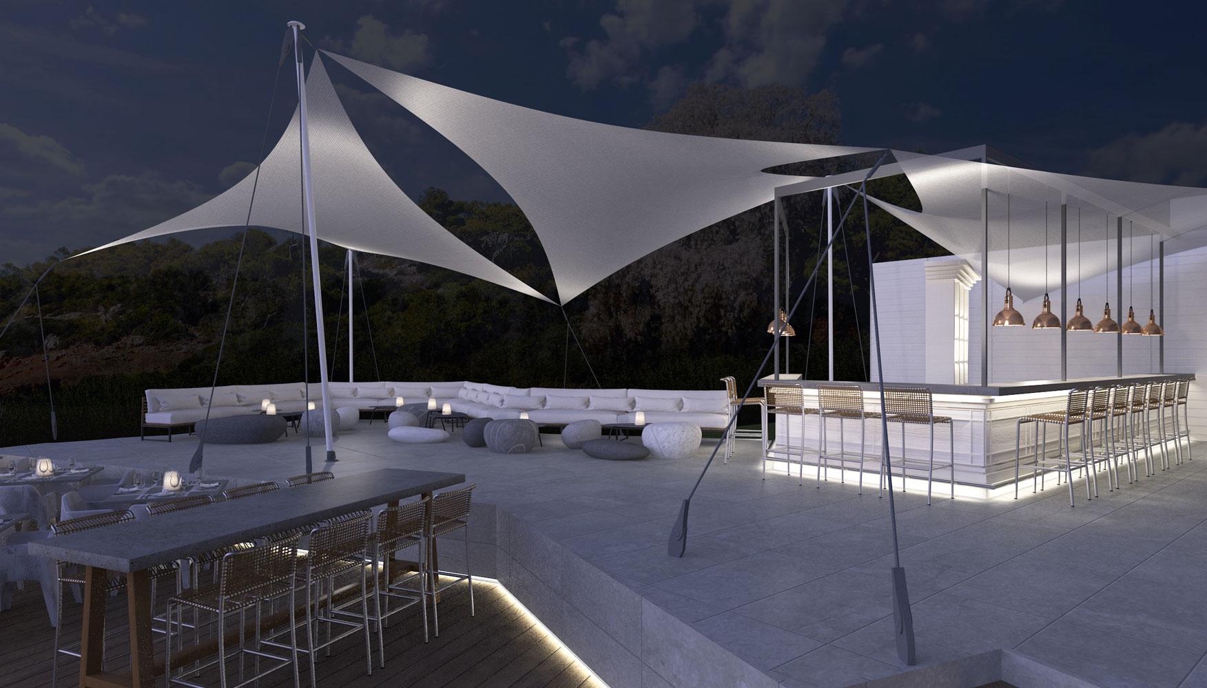 In a small but beautiful and secluded bay in Kavouri, our team designed a proposal for an all-day café/bar/restaurant, with a unique view of the Vouliagmeni bay. The shell of an existing municipal kiosk is transformed and extended towards the sea with amphitheatrically placed wooden deck levels, and a long wooden pier. The scenography is completed with the atmospheric night lighting, that underlines the different levels.