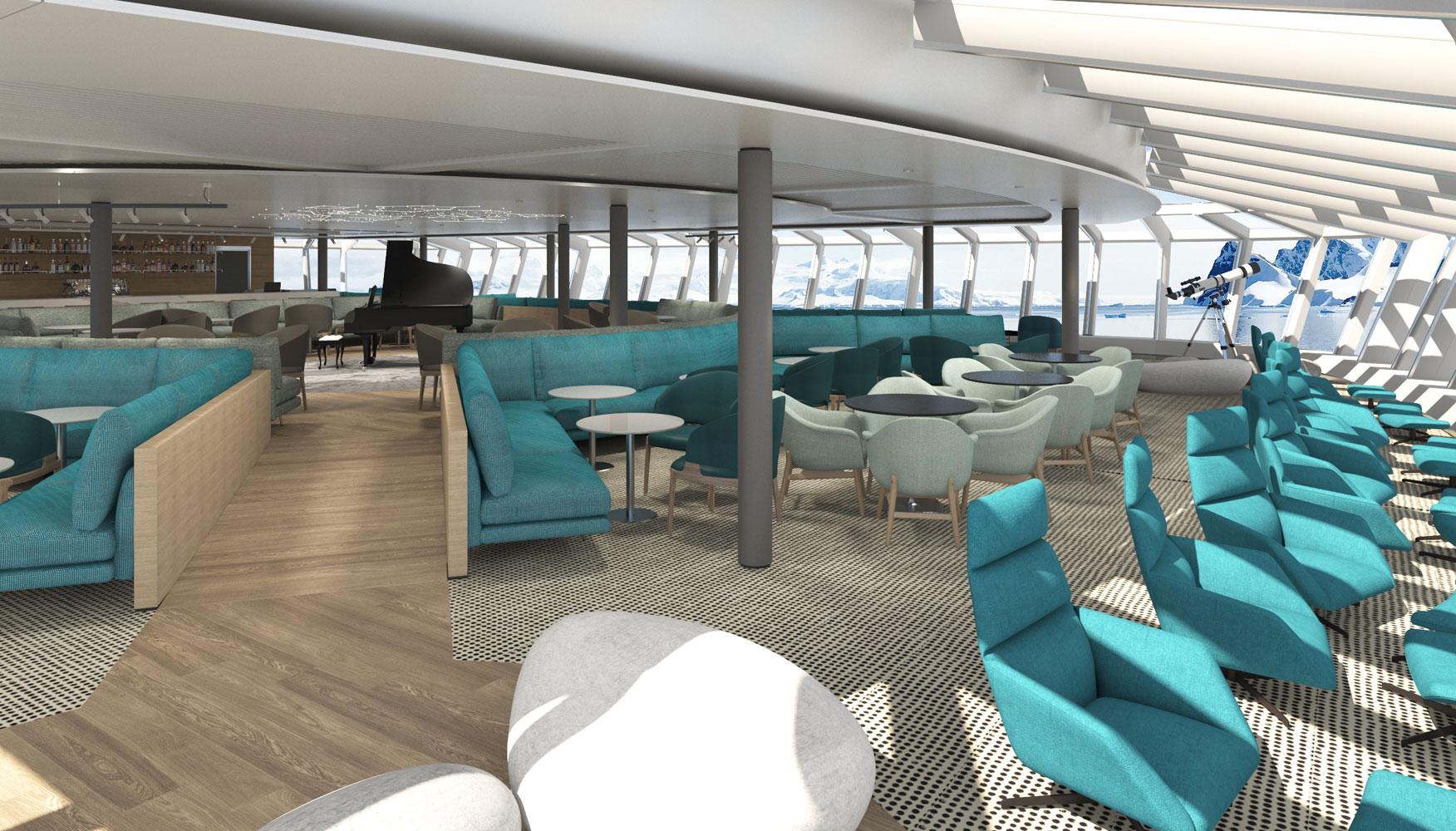 Moreover, we were asked to design seminar areas for the expeditions and a laboratory, where the passengers/explorers could bring and study their findings from their expeditions. Τhe interior layouts were arranged so that they could take the most advantage of the beautiful polar landscape views.