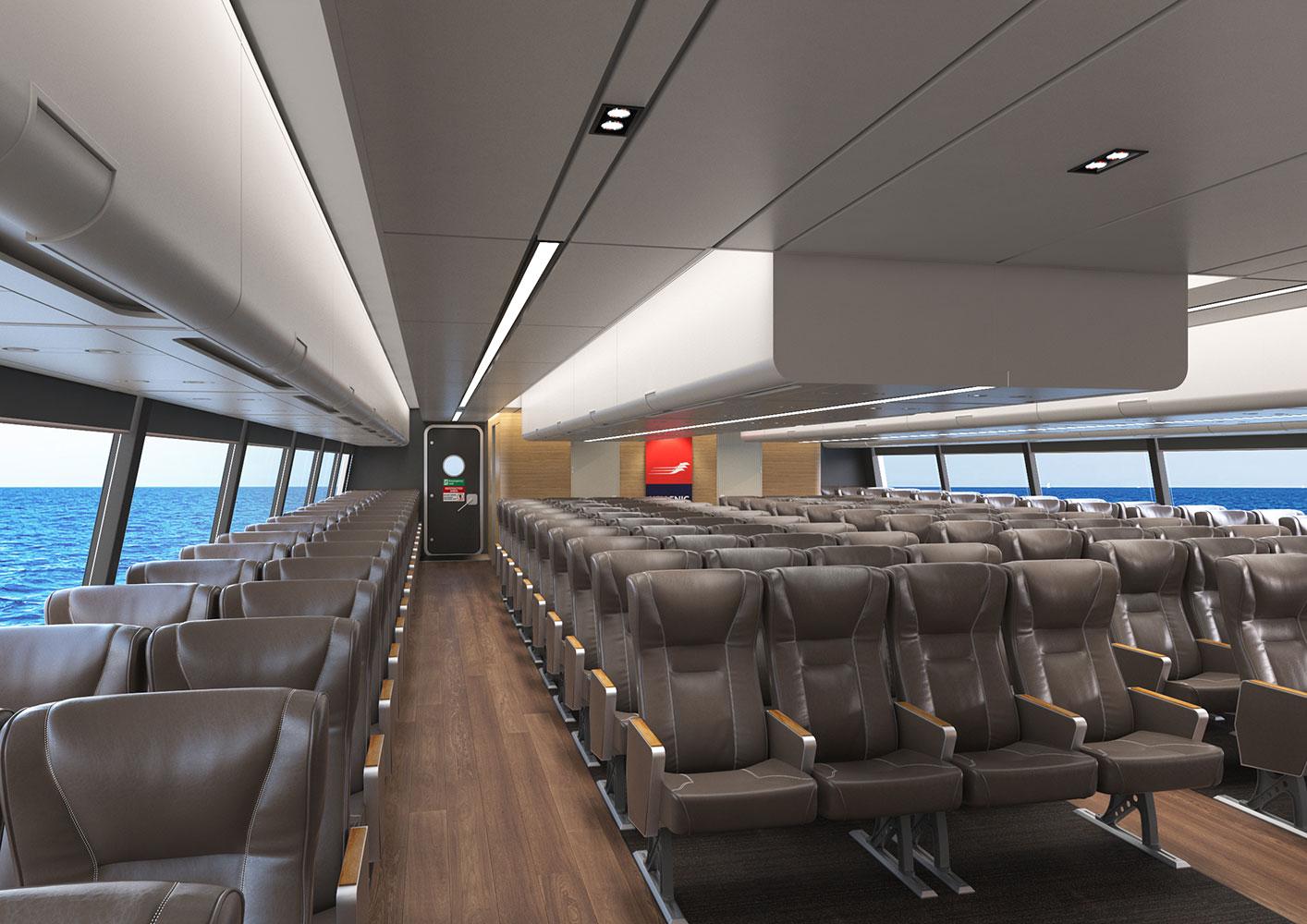 In this new design, our concept was to give the vessels the atmosphere of a modern commercial aircraft – and in doing so we have introduced features and facilities over and above those required by the Administration.