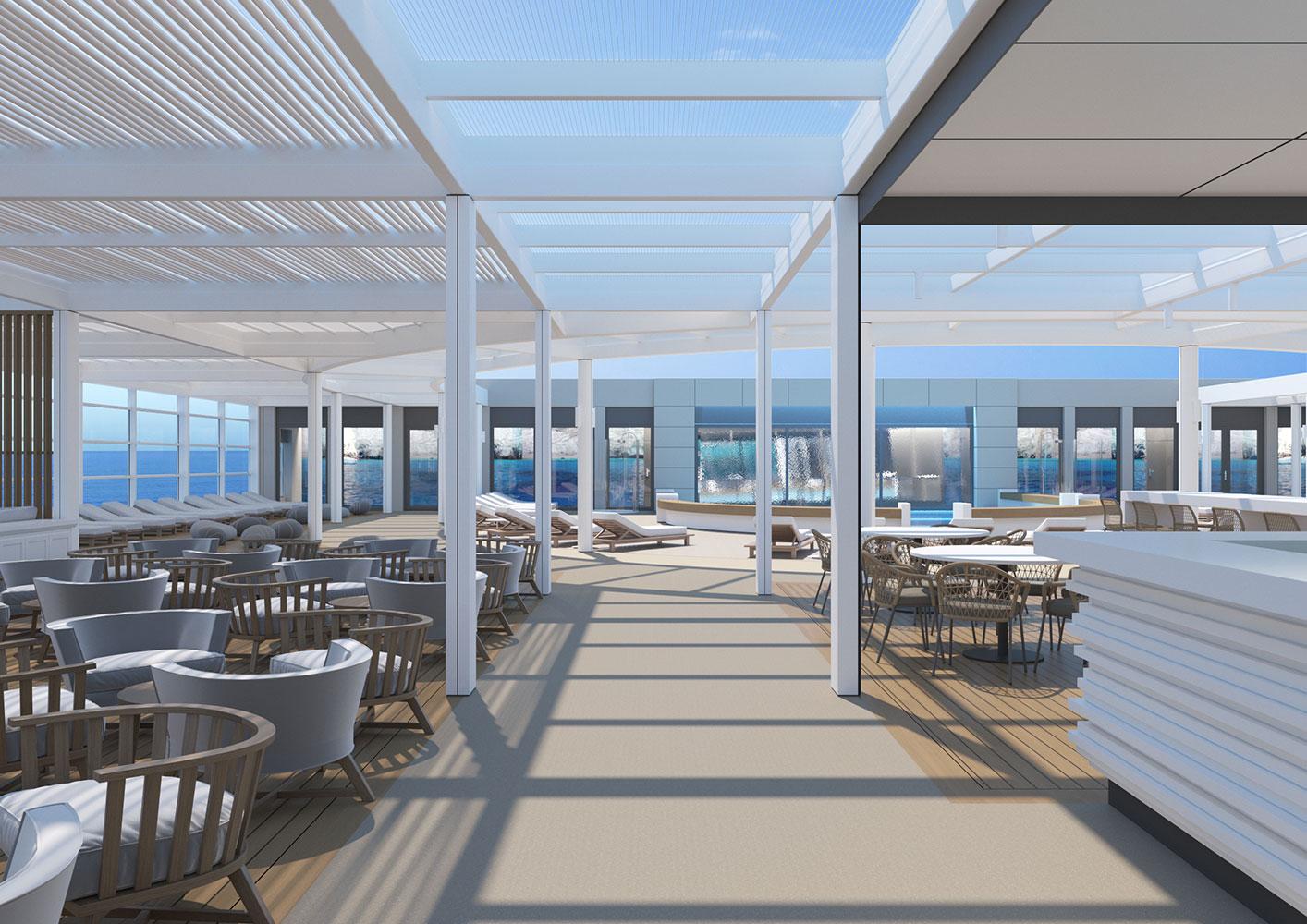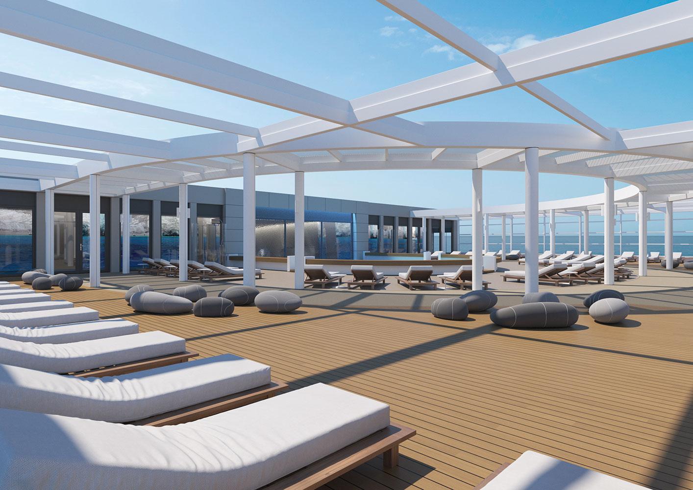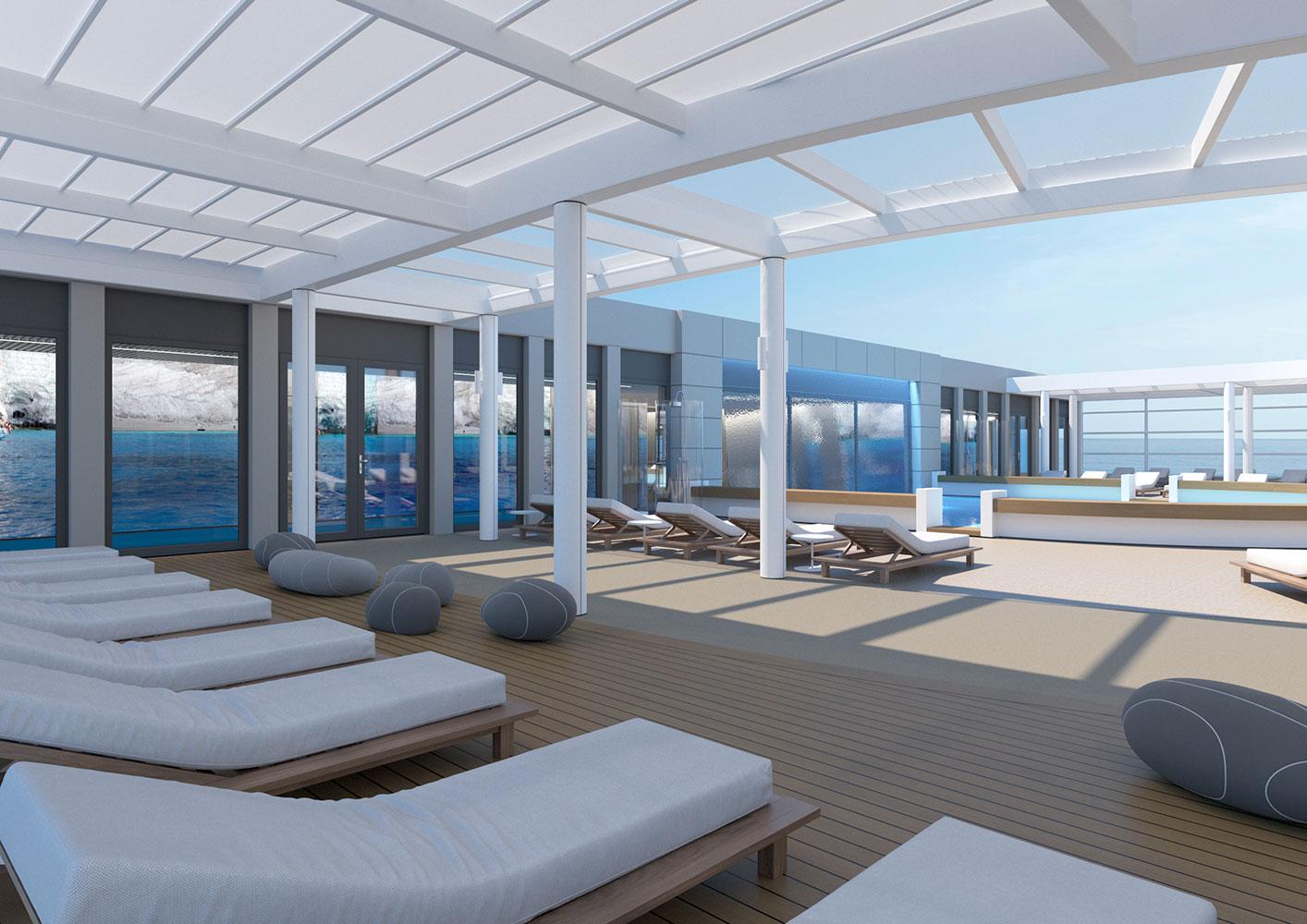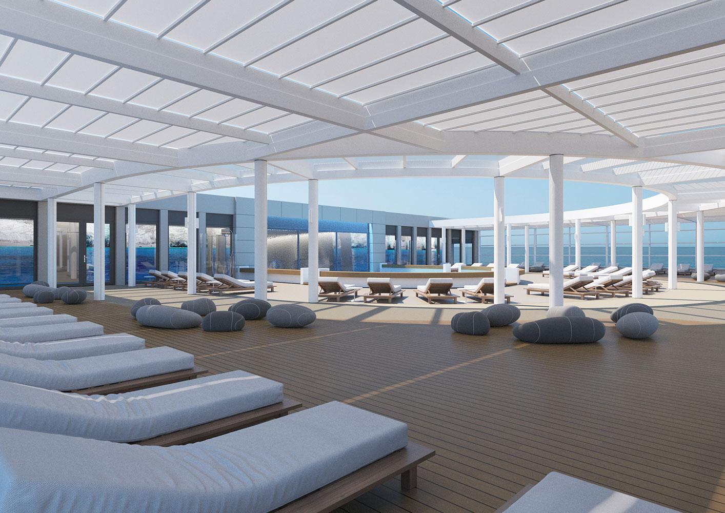 For this new collaboration of ours, the shipowner company assigned to us the design of the top deck of their brand new, innovative vessel, which has a number of outdoor areas.