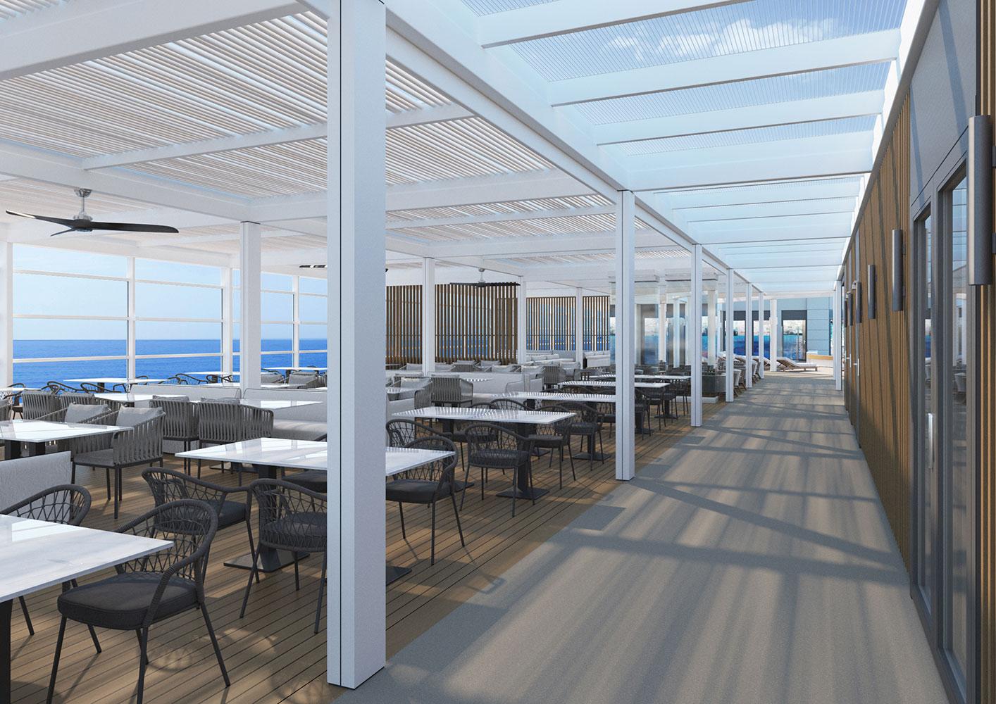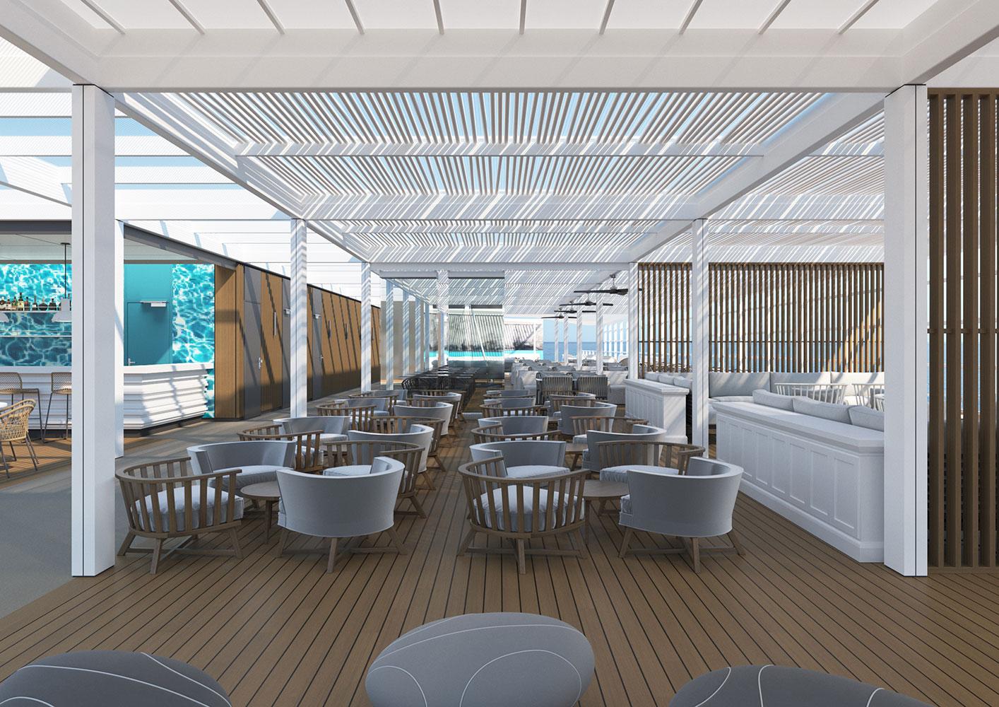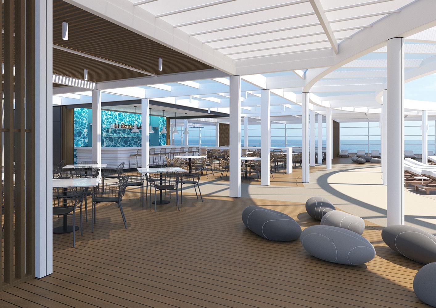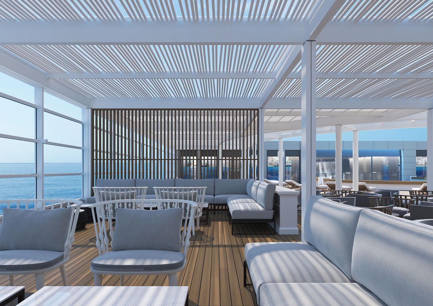 For this new collaboration of ours, the shipowner company assigned to us the design of the top deck of their brand new, innovative vessel, which has a number of outdoor areas.