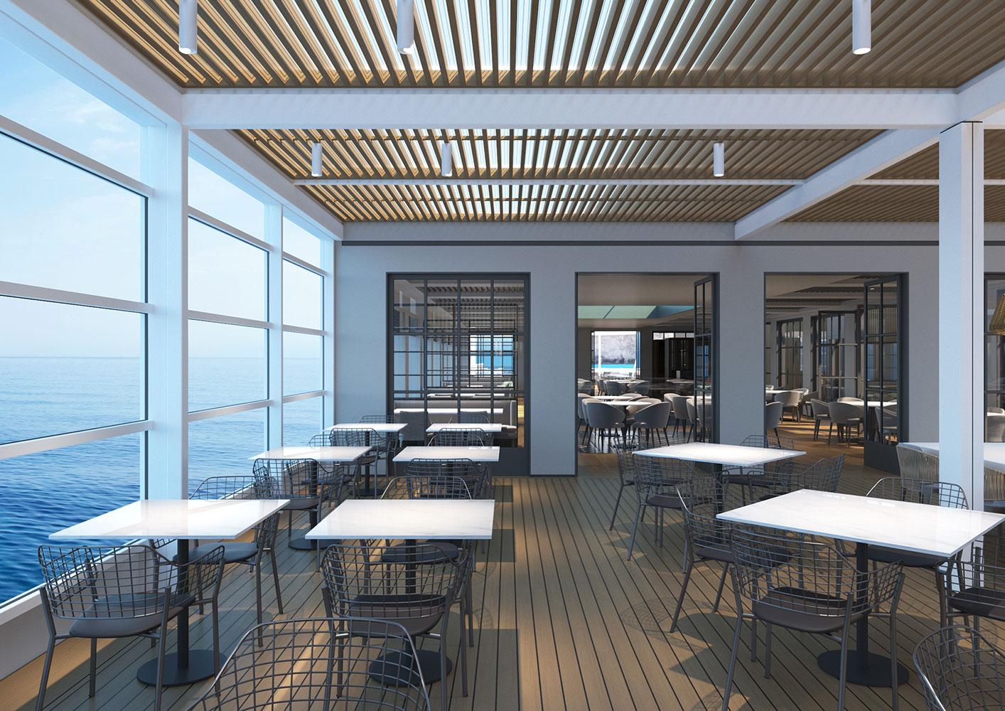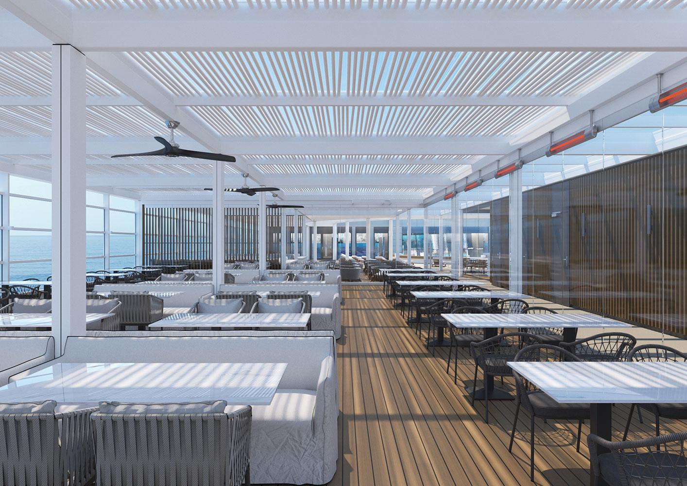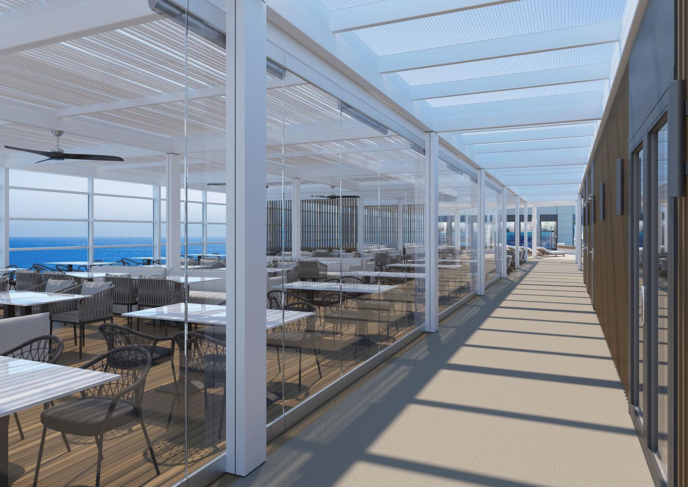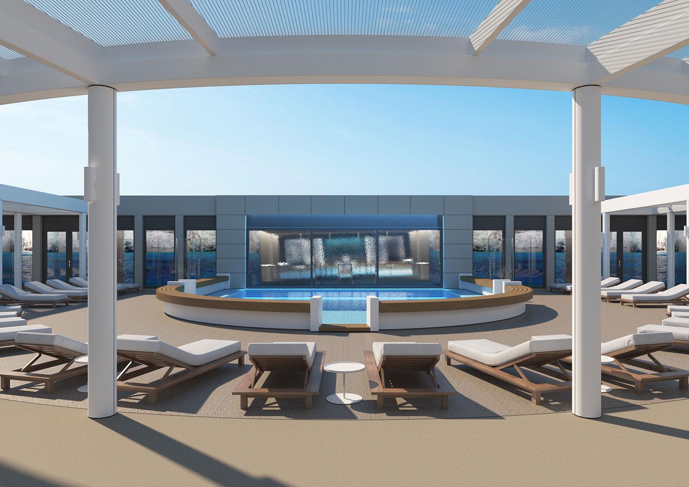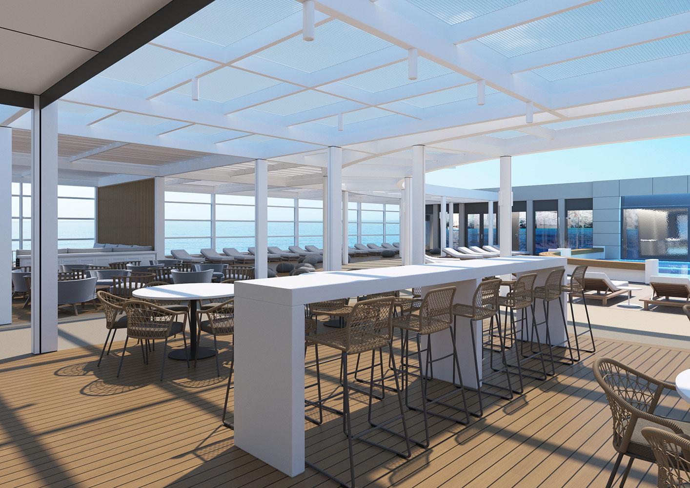 For this new collaboration of ours, the shipowner company assigned to us the design of the top deck of their brand new, innovative vessel, which has a number of outdoor areas.