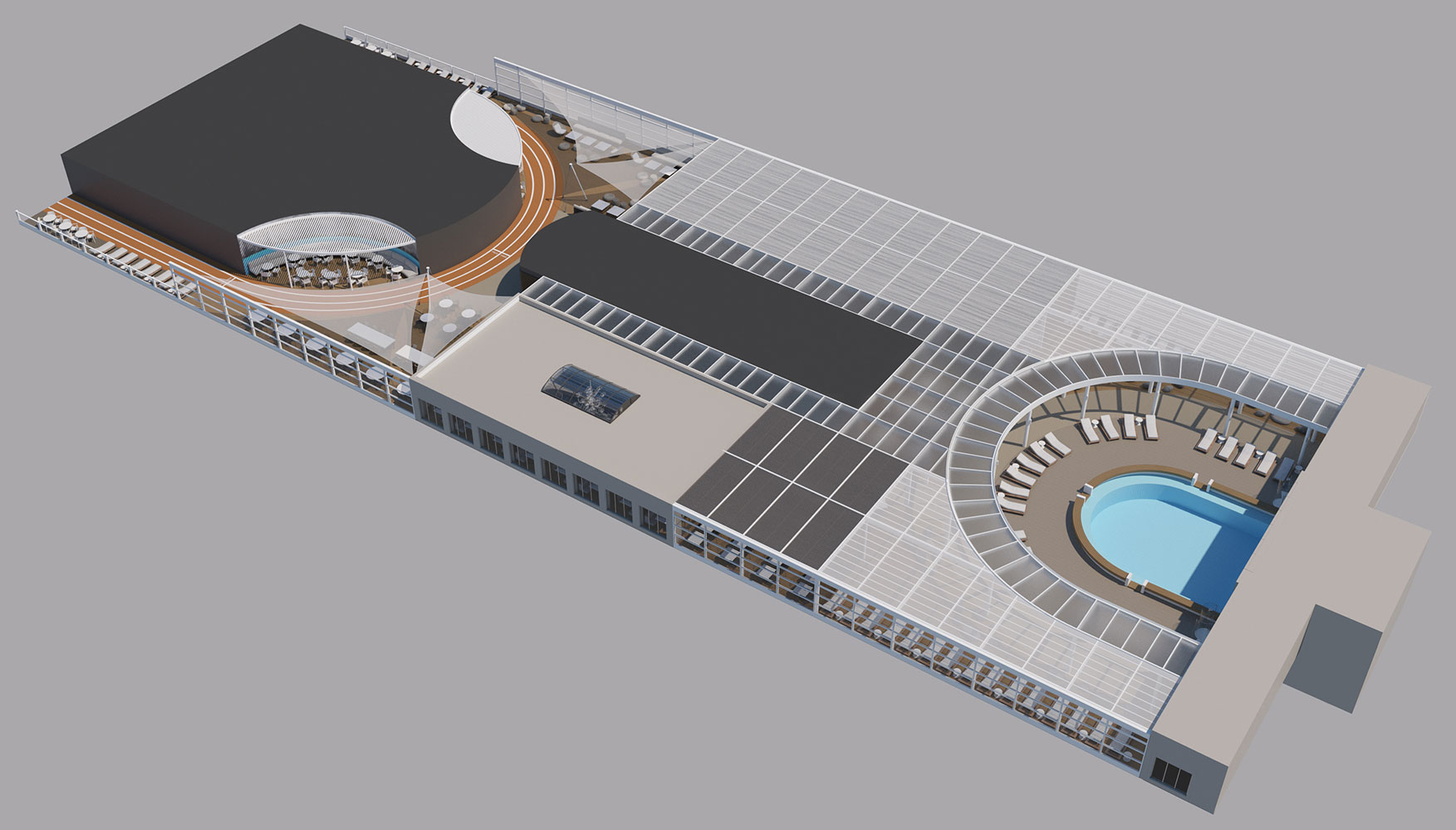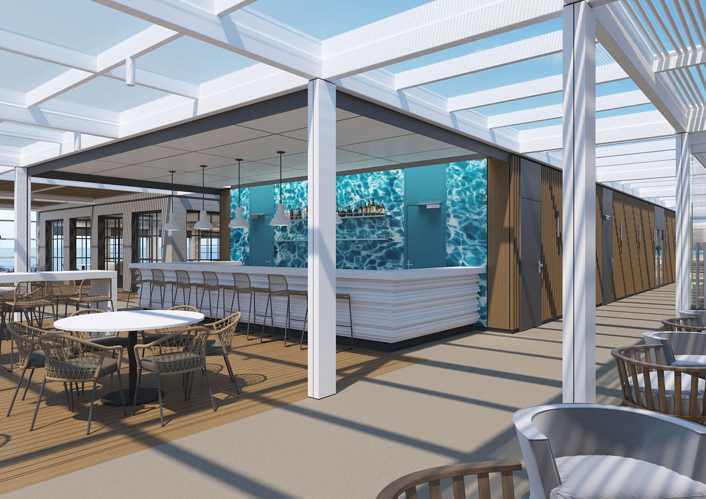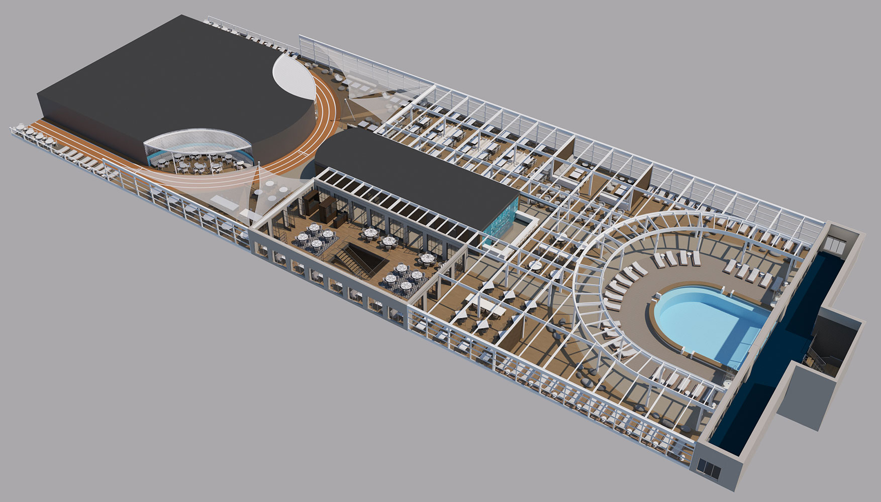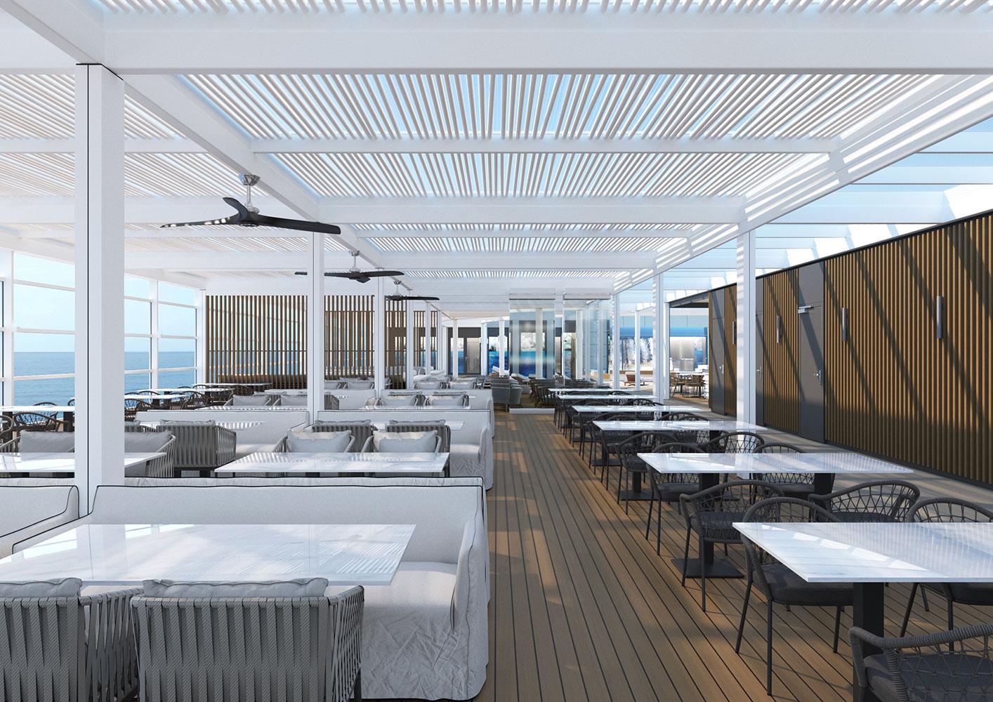 For this new collaboration of ours, the shipowner company assigned to us the design of the top deck of their brand new, innovative vessel, which has a number of outdoor areas.