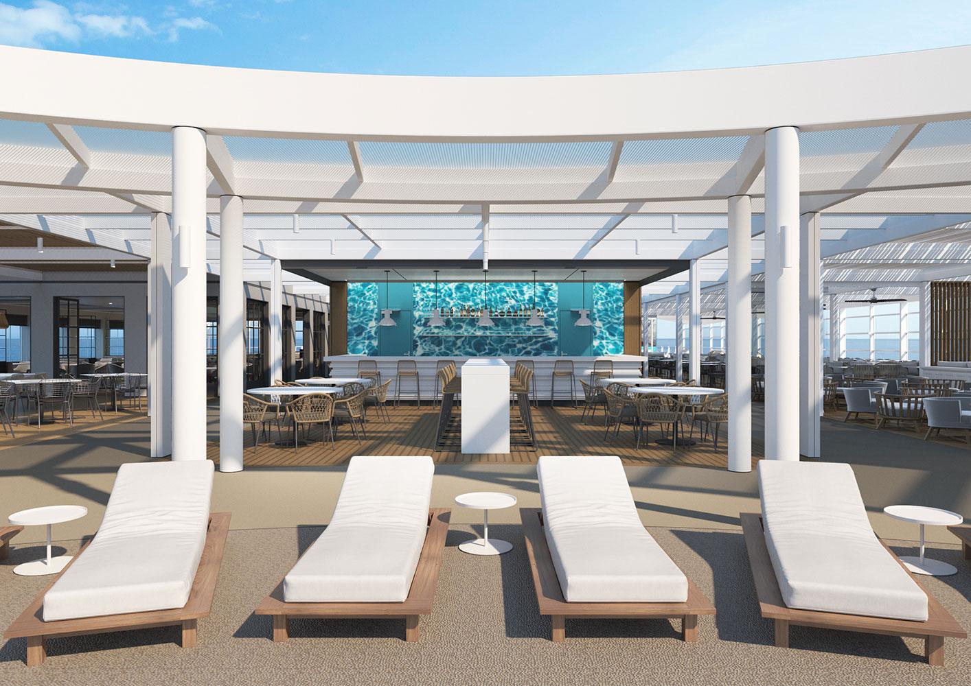 This includes a two-level, luxurious a-la carte restaurant, a large bar outdoor bar, a swimming pool and many lounge areas, protected from the wind and rain.