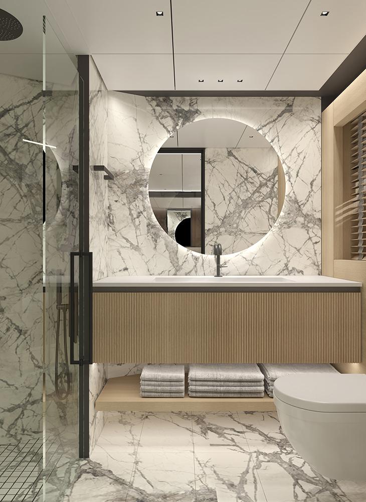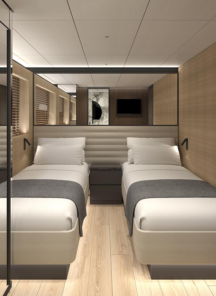 We undertook a complete renovation, transforming the style and features of the yacht to meet the desires of the owning company. The contractor of the renovation was KMS Hellas Outfitting. The Maestro boasts six spacious cabins that can accommodate up to 12 guests, offering both comfort and privacy. Architectural highlights include a spacious sundeck, jacuzzi, and integrated entertainment systems, ensuring a premium living experience onboard.