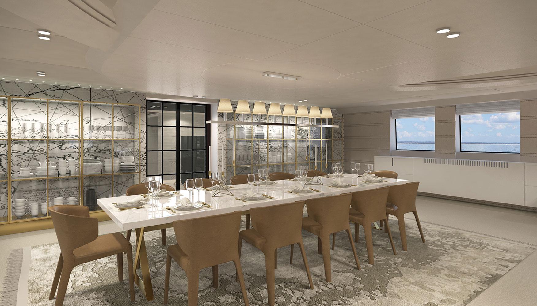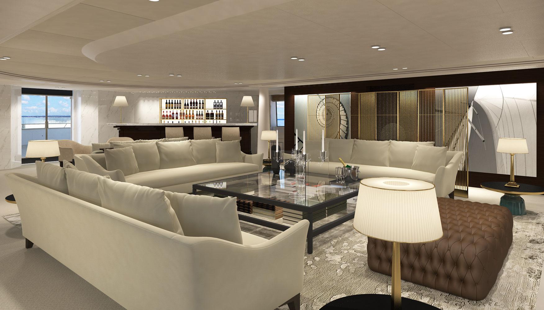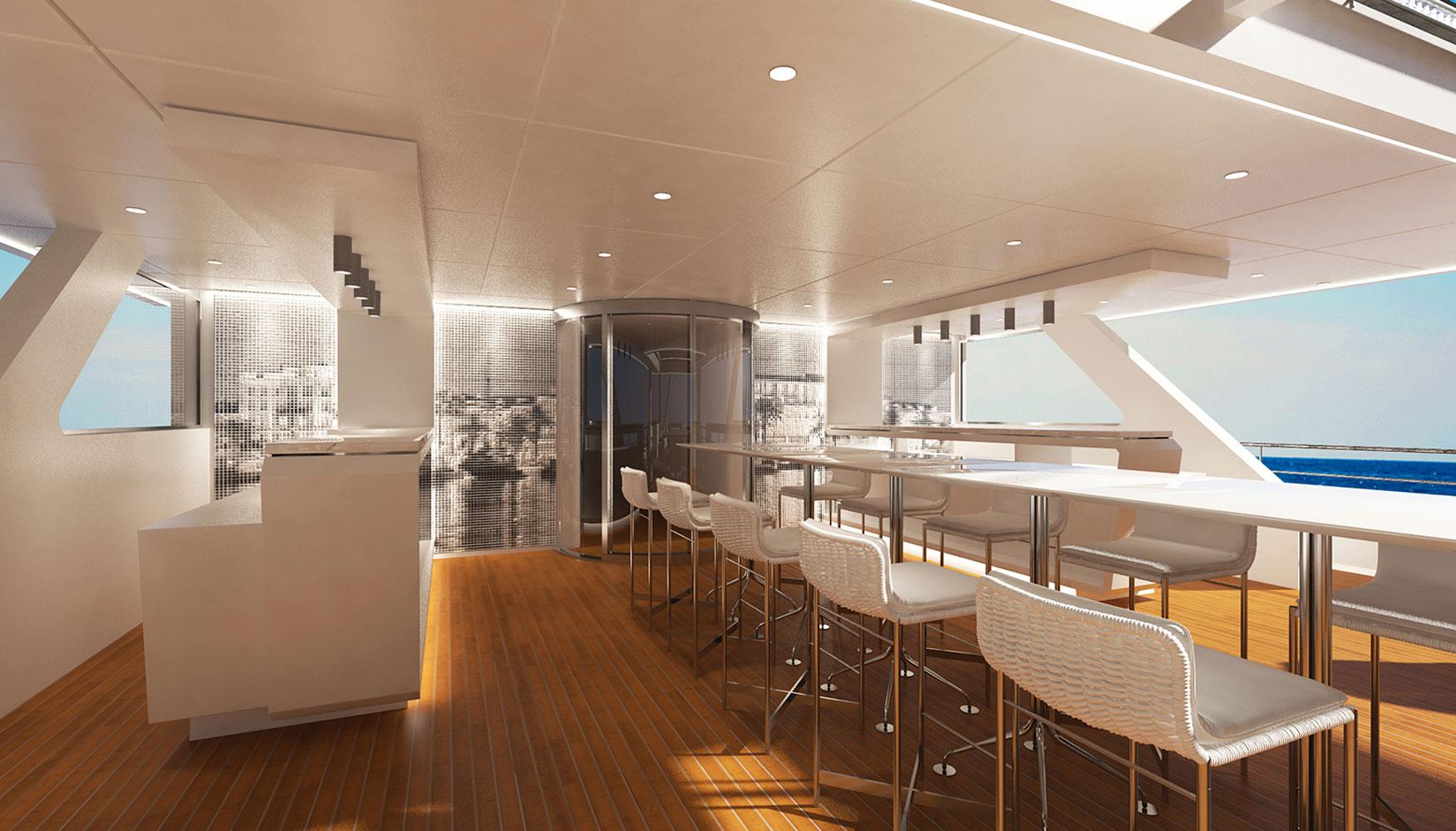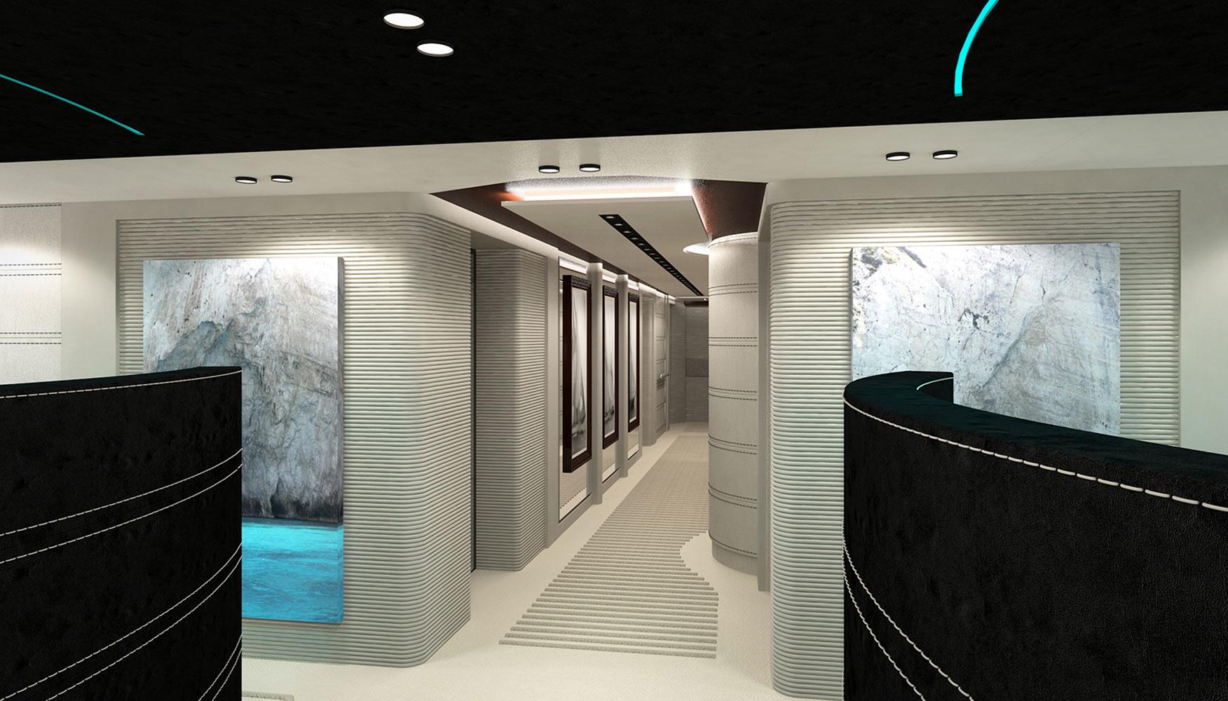 In 2016 we were asked to redesign the mega-yacht Katina for Brodosplit Shipyard in Split, Croatia. Μ/Y Katina is a 60 m luxury yacht for chartering, that sleeps us to 12 guests, with a crew of 15 to ensure a luxury experience. Our task was to incorporate our design aesthetic to this yacht, at a very tight timeframe, to an already advanced interior, in order to bring more luxury and warmth at the developed stage it was at the time, and to propose different “party” light scenarios for the open decks.