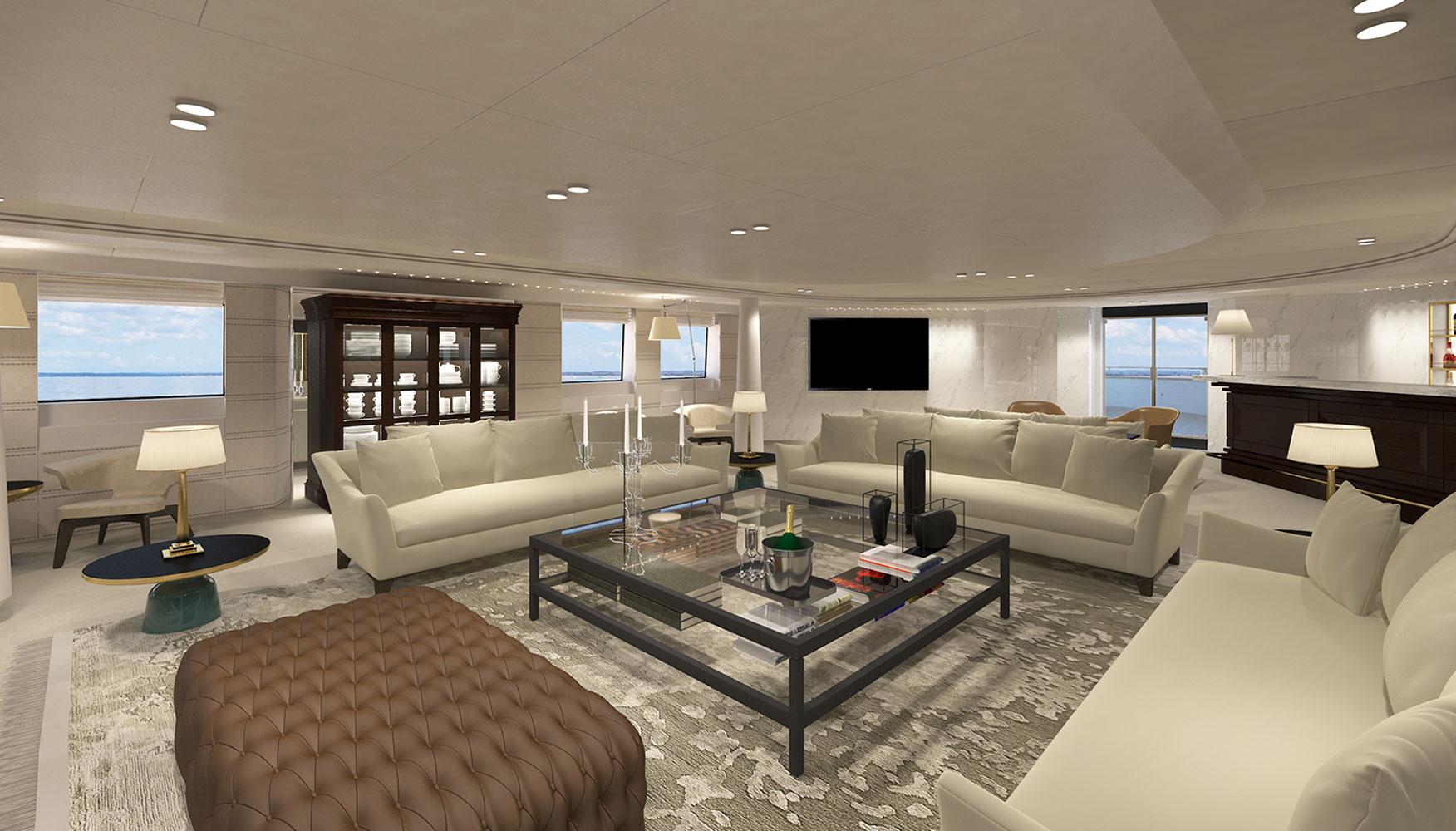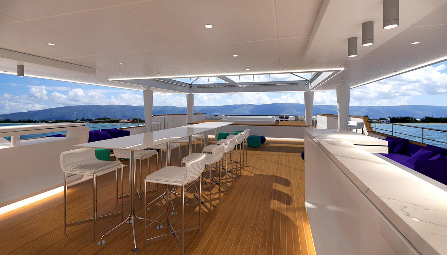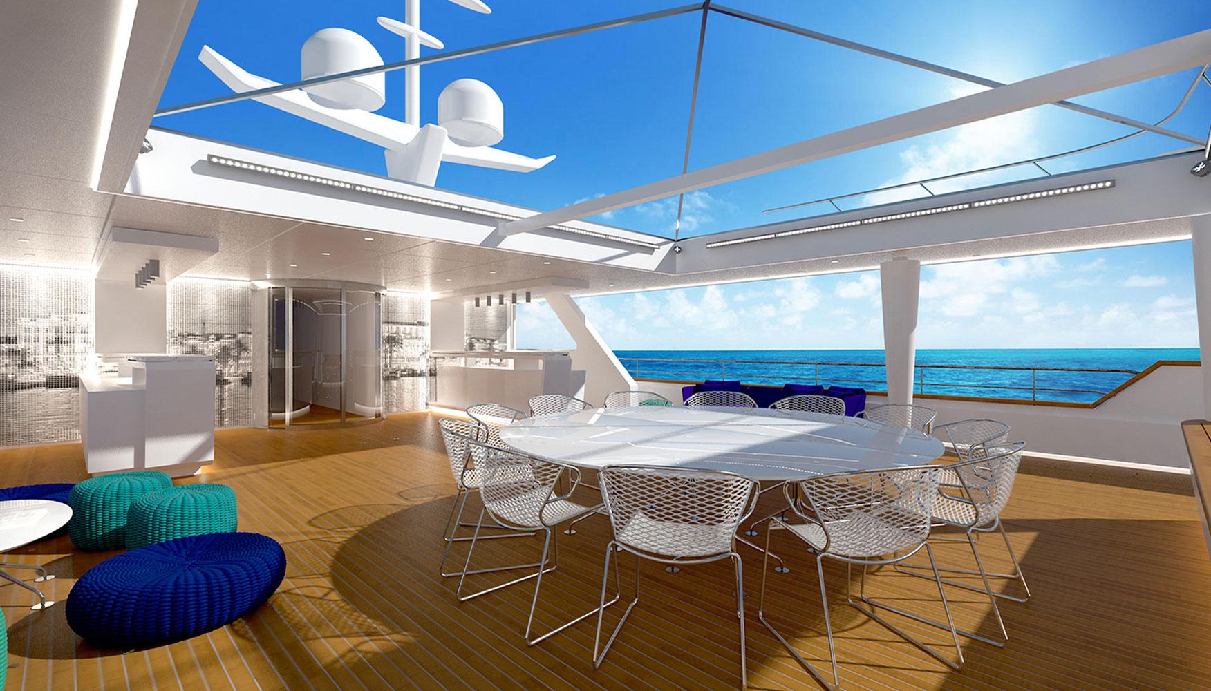 In 2016 we were asked to redesign the mega-yacht Katina for Brodosplit Shipyard in Split, Croatia. Μ/Y Katina is a 60 m luxury yacht for chartering, that sleeps us to 12 guests, with a crew of 15 to ensure a luxury experience. Our task was to incorporate our design aesthetic to this yacht, at a very tight timeframe, to an already advanced interior, in order to bring more luxury and warmth at the developed stage it was at the time, and to propose different “party” light scenarios for the open decks.