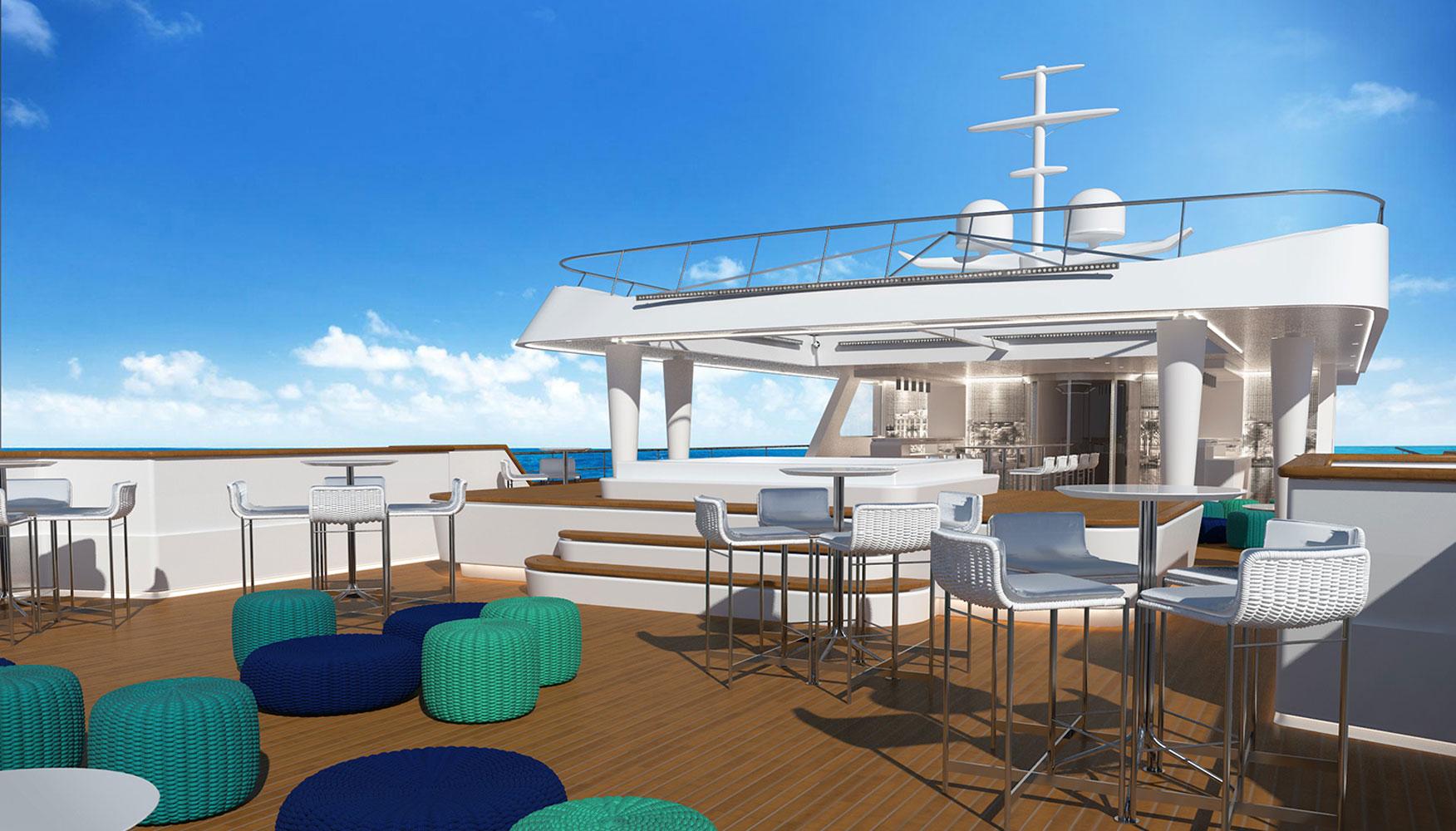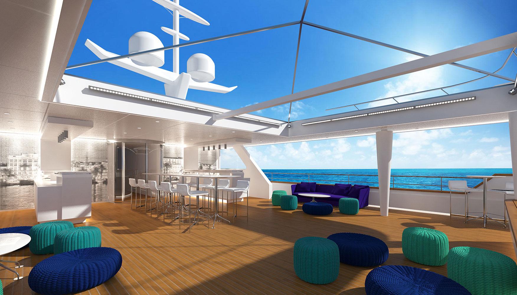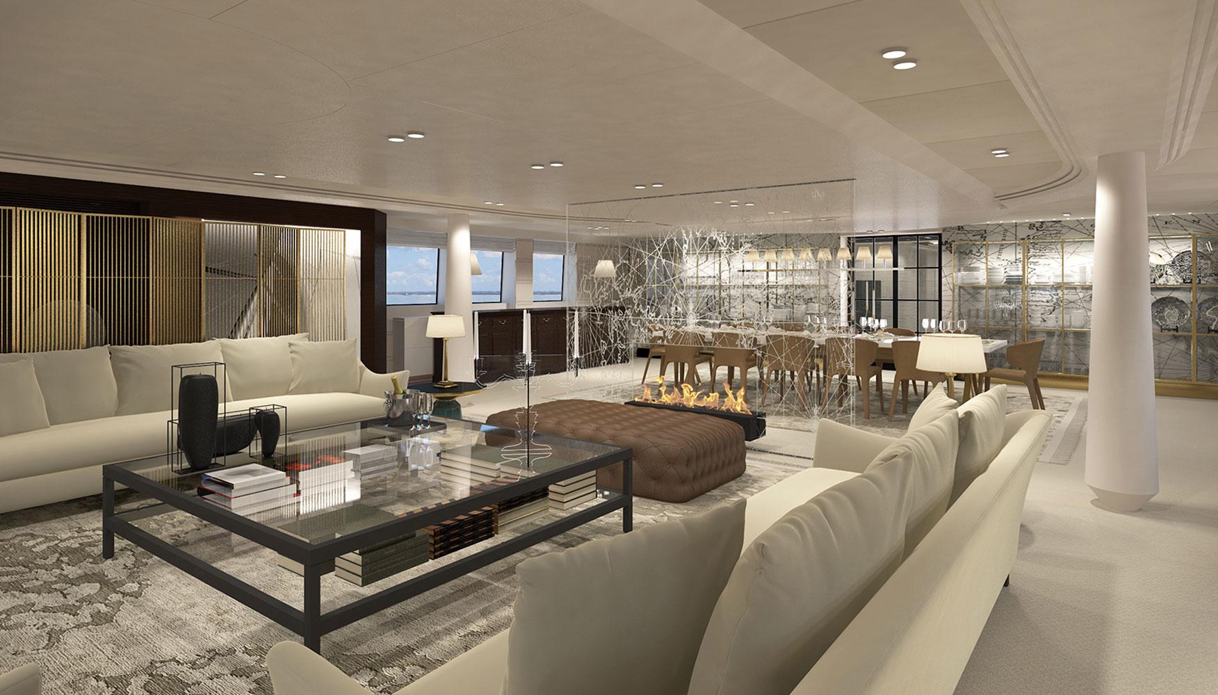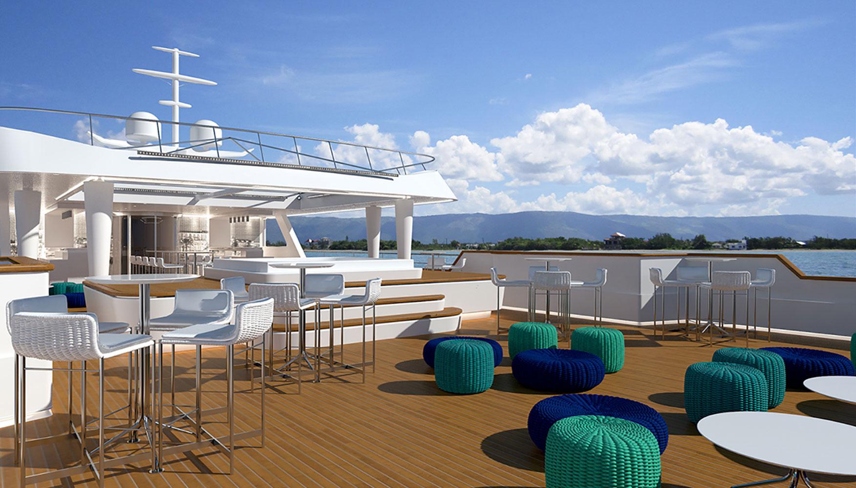 In 2016 we were asked to redesign the mega-yacht Katina for Brodosplit Shipyard in Split, Croatia. Μ/Y Katina is a 60 m luxury yacht for chartering, that sleeps us to 12 guests, with a crew of 15 to ensure a luxury experience. Our task was to incorporate our design aesthetic to this yacht, at a very tight timeframe, to an already advanced interior, in order to bring more luxury and warmth at the developed stage it was at the time, and to propose different “party” light scenarios for the open decks.